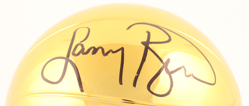 Replica championship trophy measures approximately 12" in height and has been hand-signed Larry Bird (HOF).