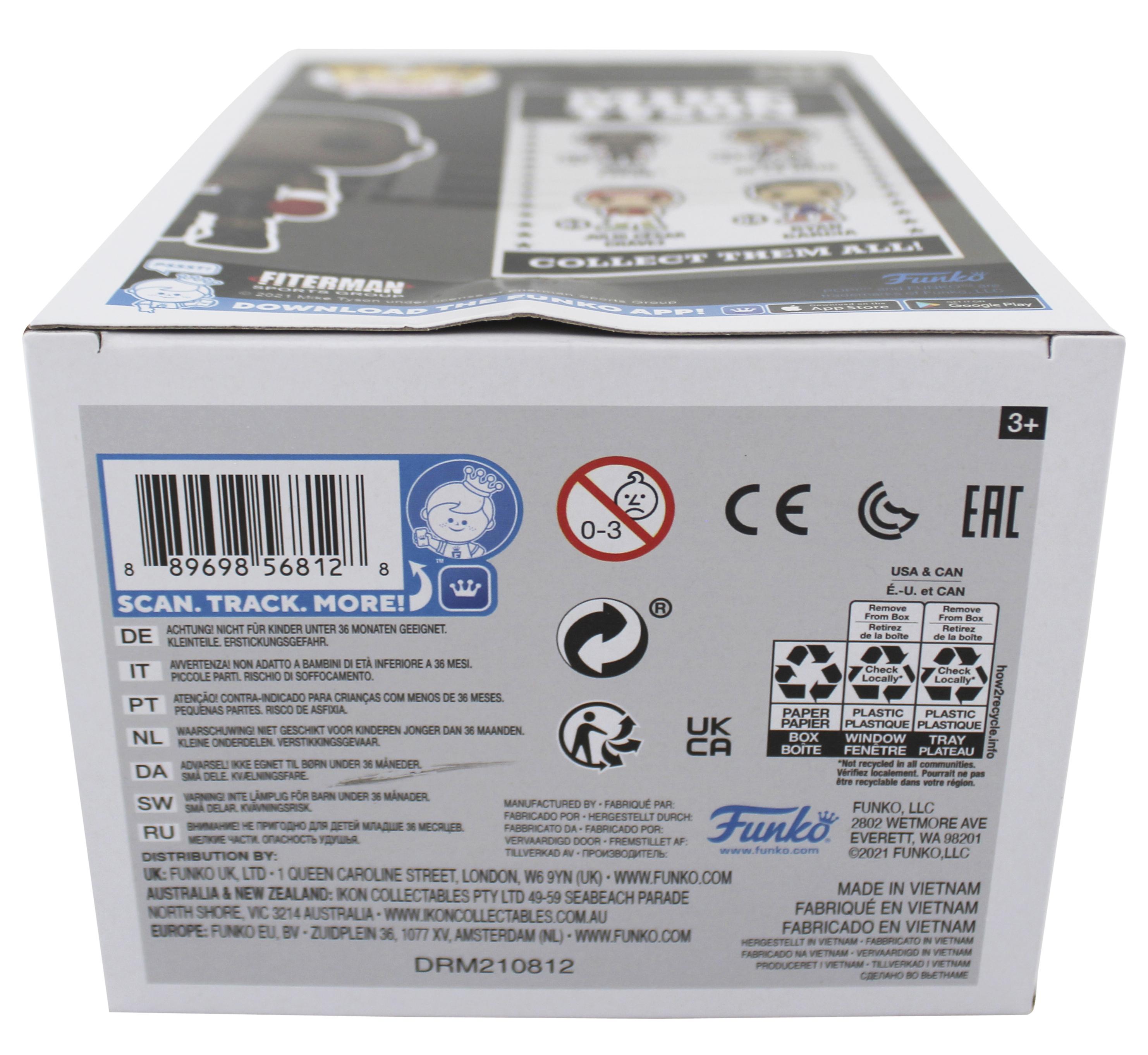 Funko Pop! figure measures approximately 4" tall and comes in original packaging. Hand-signed by Mike Tyson (HOF).