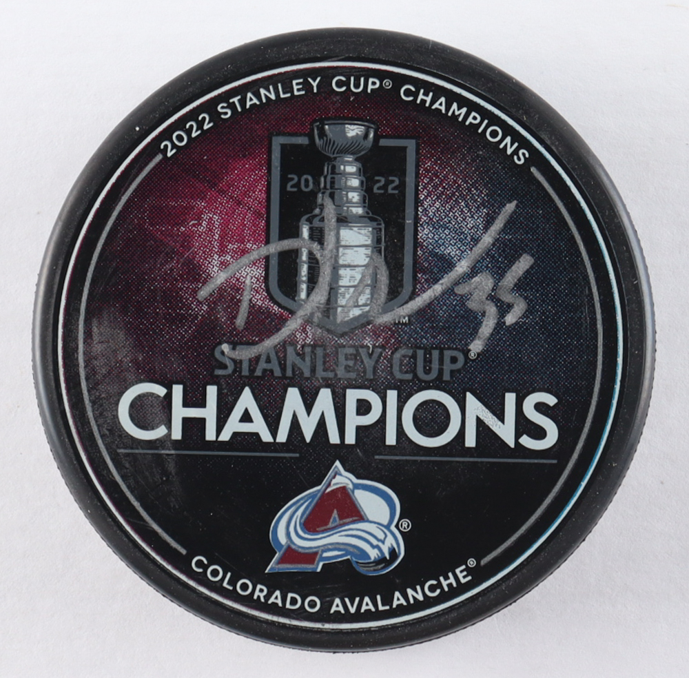 Colorado Avalanche 2022 Stanley Cup logo hockey puck. Please note, the signature is smudged.