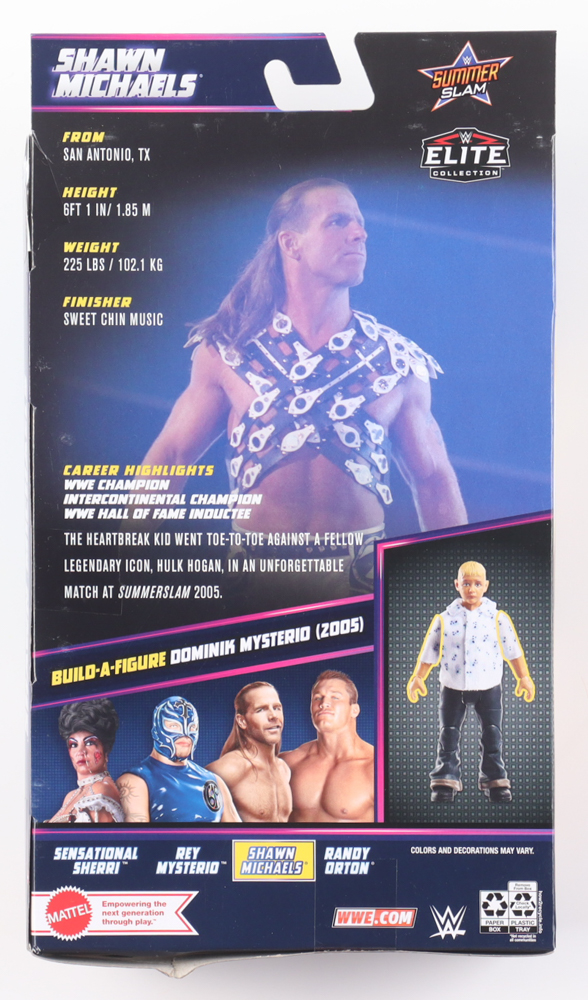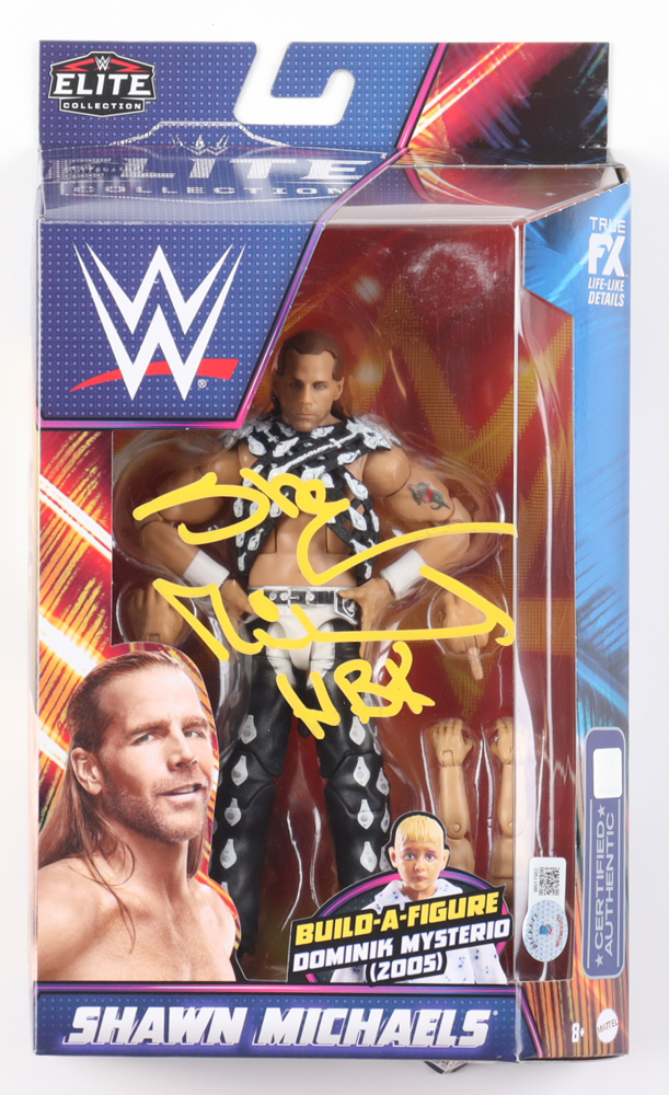 WWE Summer Slam Elite Collection Series action figure. Hand-signed and inscribed on the packaging by Shawn Michaels (HOF). Please note, there are scuffing and tears on the original packaging.