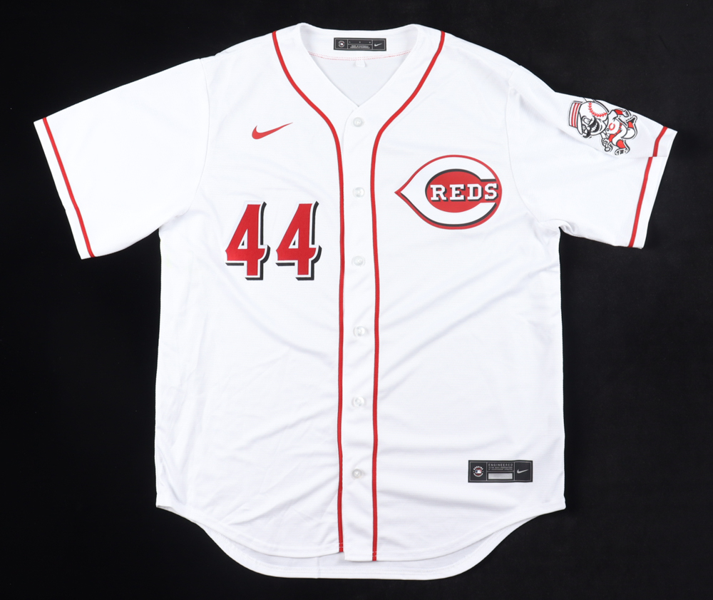Nike jersey. Everything is pressed on, size L. Hand-signed by Elly De La Cruz (Cincinnati Reds). Please note, there is a yellow stain on the front of the jersey.