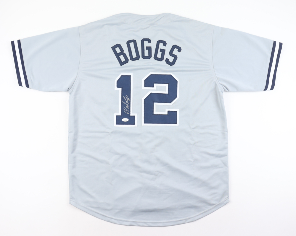 Custom jersey with everything sewn on, size XL. Hand-signed by Wade Boggs (HOF). Please note, there is a stain below the reverse number.