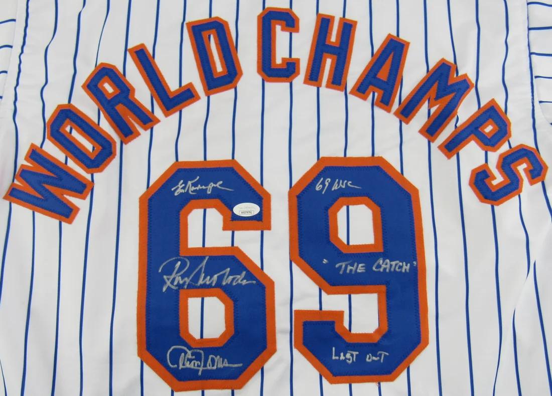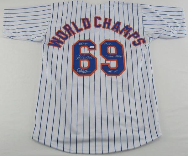 Jersey with everything sewn on, size XL. Hand-signed and inscribed by Cleon Jones, Ron Swoboda and Ed Kranpool.