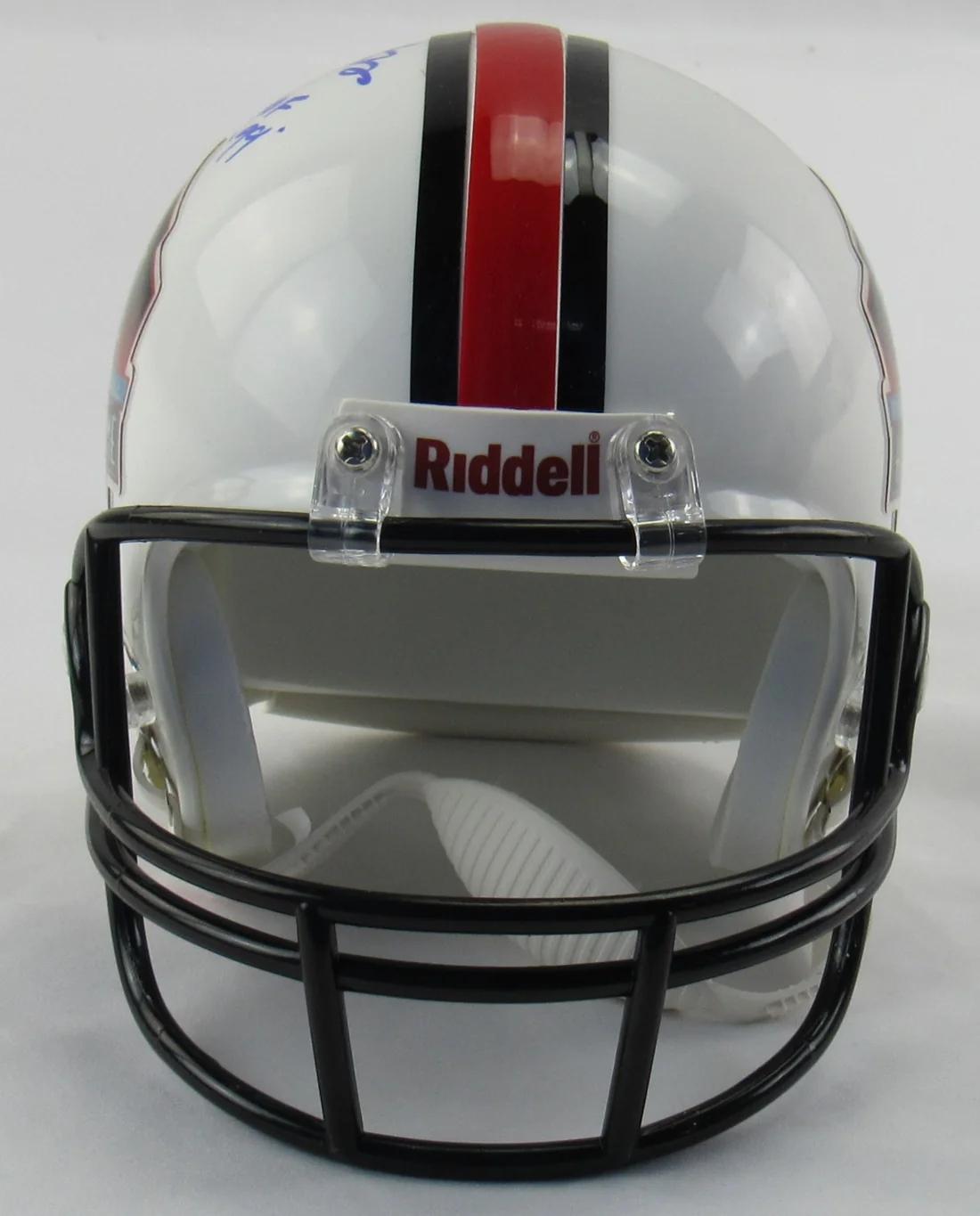 Riddell NFL Hall of Fame logo mini helmet has been hand-signed and inscribed by Lawrence Taylor (New York Giants, HOF).