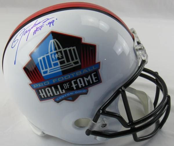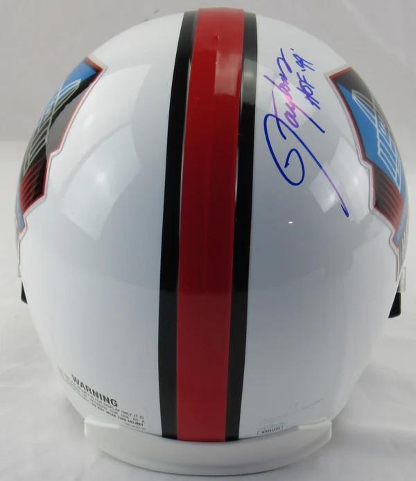 Riddell NFL Hall of Fame logo full-size replica helmet has been hand-signed and inscribed by Lawrence Taylor (New York Giants, HOF).
