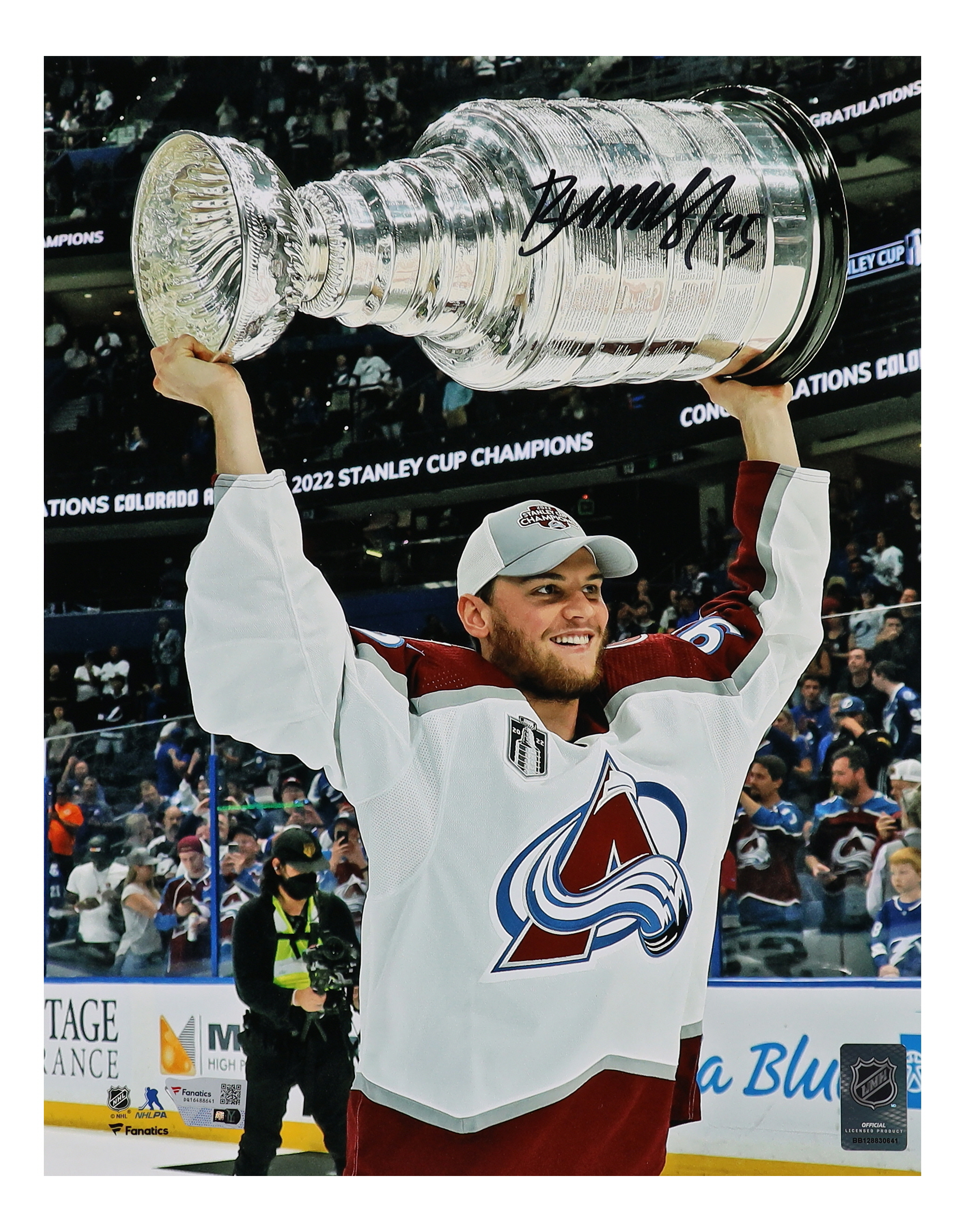 Photo measures 11" x 14" in size and has been hand-signed by Andre Burakovsky (Colorado Avalanche). Please note, creasing on the surface of the photo.
