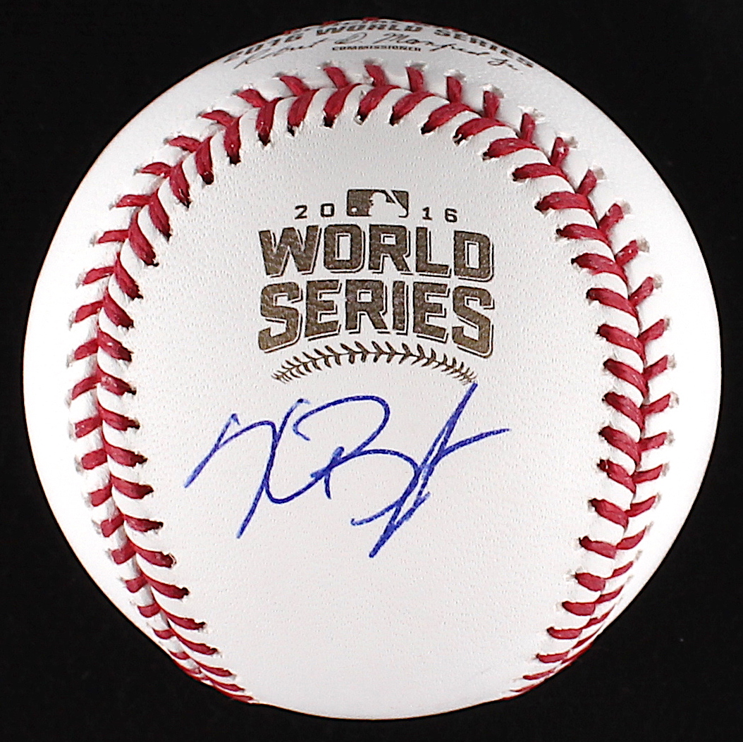 Rawlings Official Major League 2016 World Series Baseball hand-signed under the logo in blue ink by Kris Bryant (Cubs).