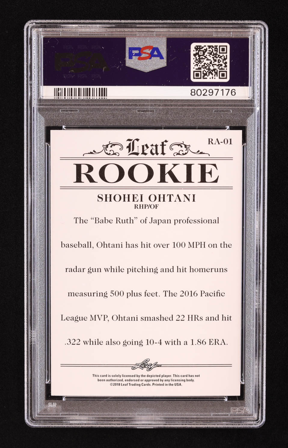 Shohei Ohtani 2018 Leaf Ohtani Rookie Achievement #RA01 RC (PSA 10)