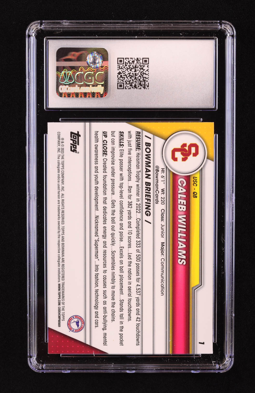Caleb Williams 2023 Bowman Chrome University #1 RC (CGC 9)