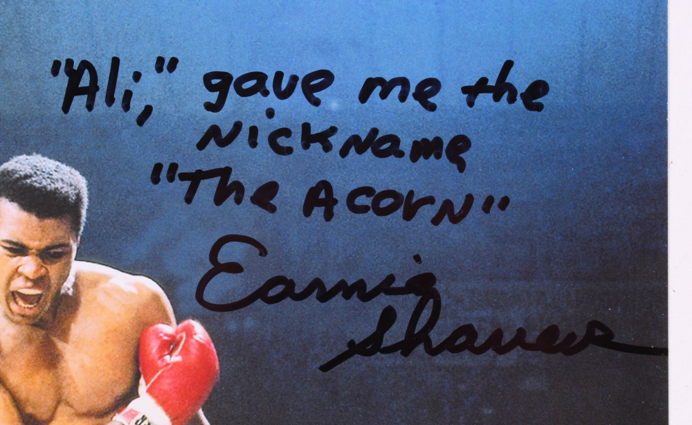 Photo measures 8" x 10" in size. Hand-signed and inscribed by Earnie Shavers (D. 2022).