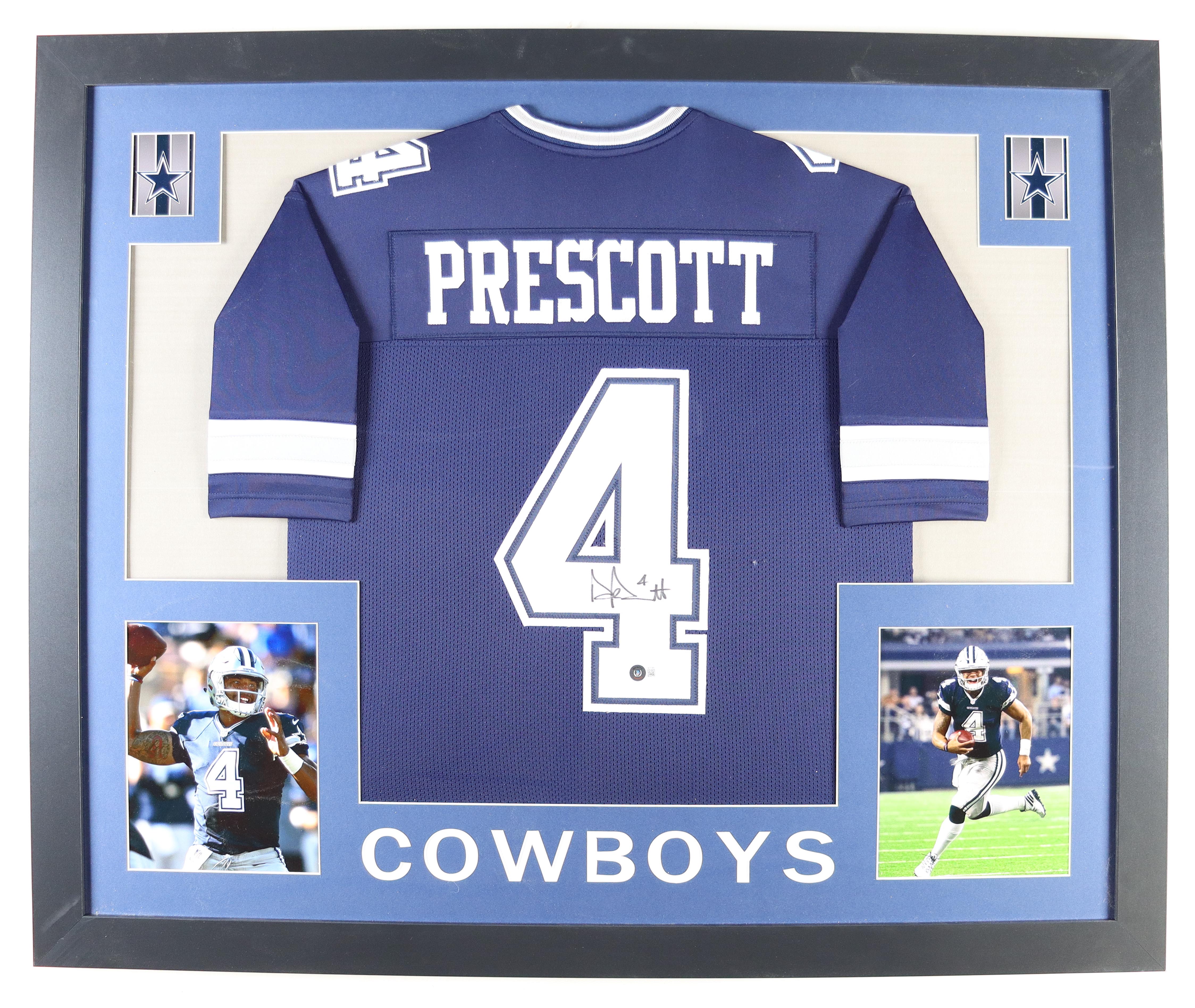 Custom frame measures approximately 35" x 43" in size and features a jersey hand-signed by Dak Prescott.