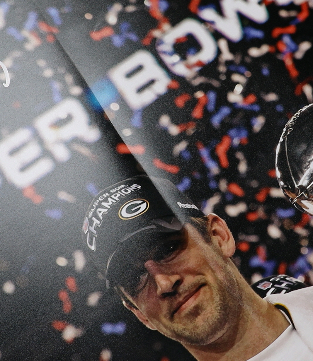 Photo measures 16" x 20" in size. Hand-signed by Aaron Rodgers (Green Bay Packers). Please note, there are creases throughout the photo.