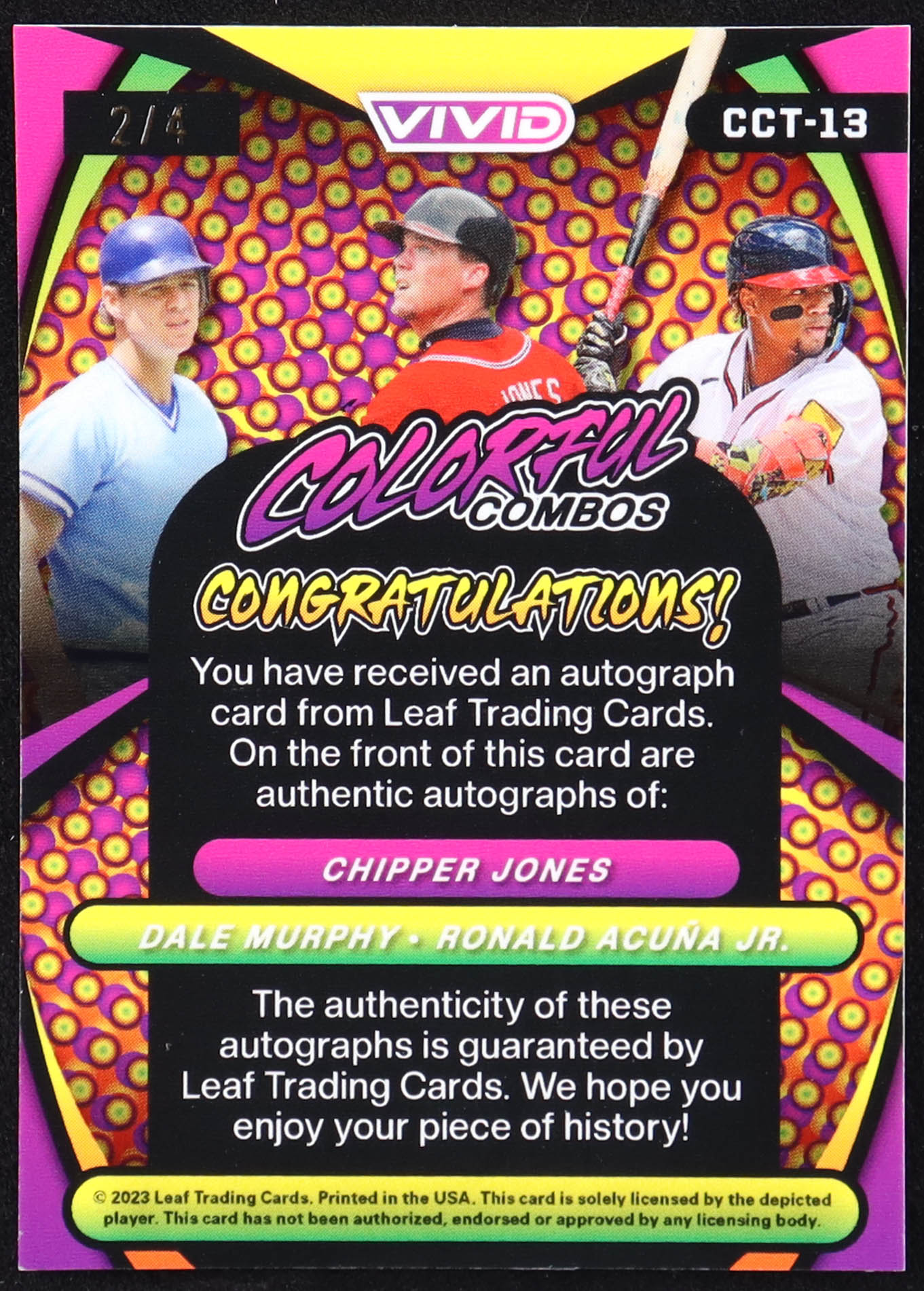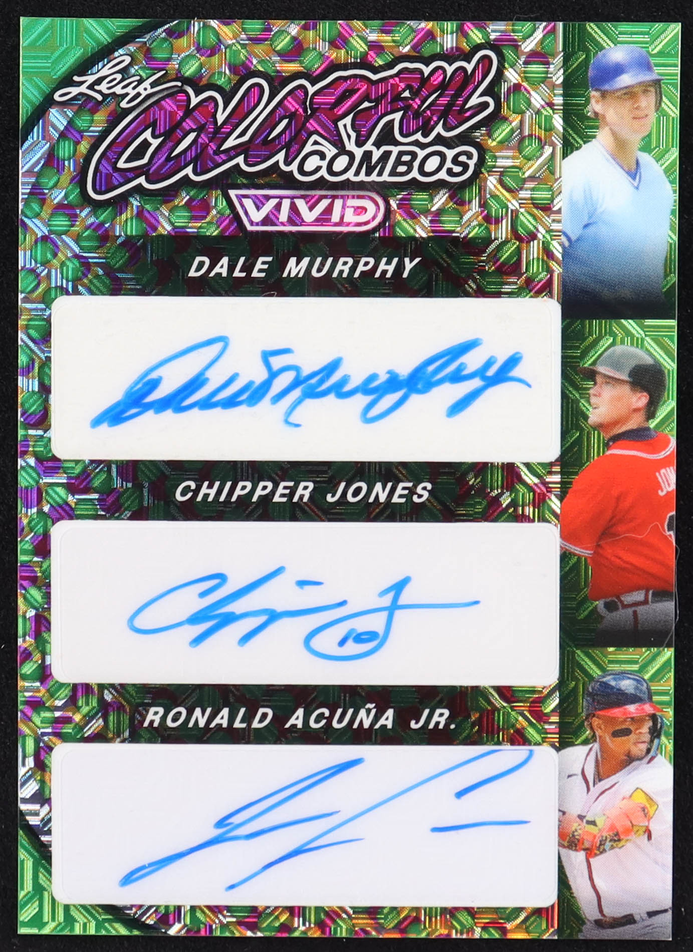 Dale Murphy / Chipper Jones / Ronald Acuna Jr. 2023 Leaf Vivid Colorful Combos Mojo Green #CCT13 #2/4
