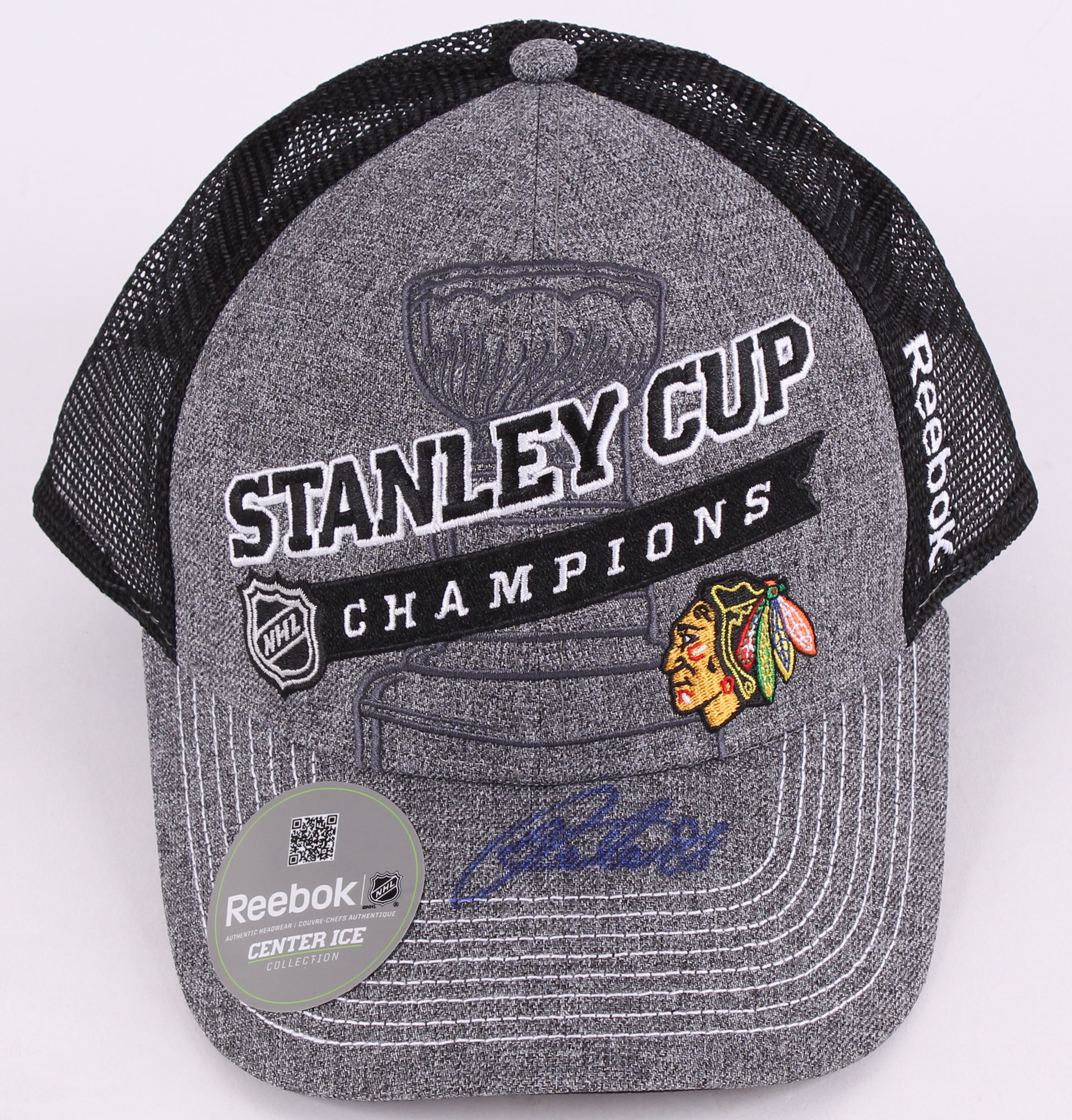 Reebok snapback hat. Hand-signed in blue felt-tip pen by Patrick Kane. (Blackhawks)