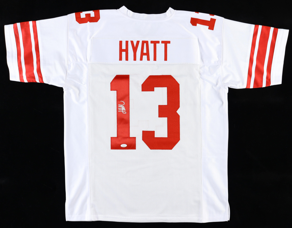 Custom jersey with everything sewn on, size XL. Hand-signed by Jalin Hyatt.