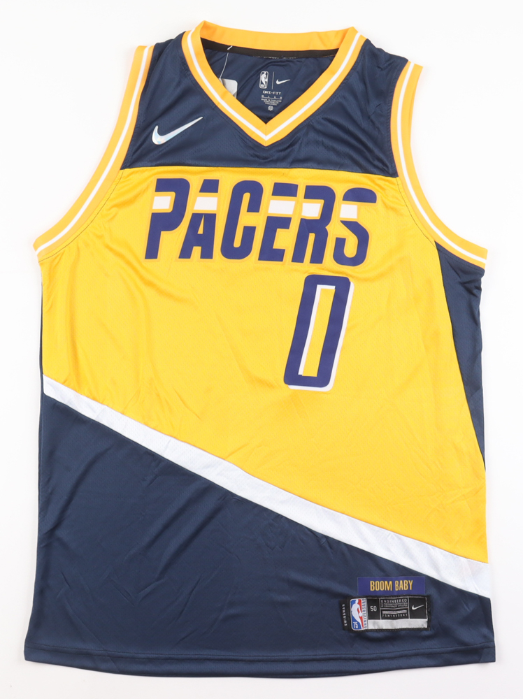 Nike jersey. Everything pressed on, size 50. Hand-signed by Tyrese Haliburton.
