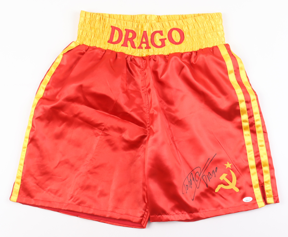 Dolph Lundgren Signed "Rocky IV" Boxing Trunks Inscribed "Drago" (JSA)