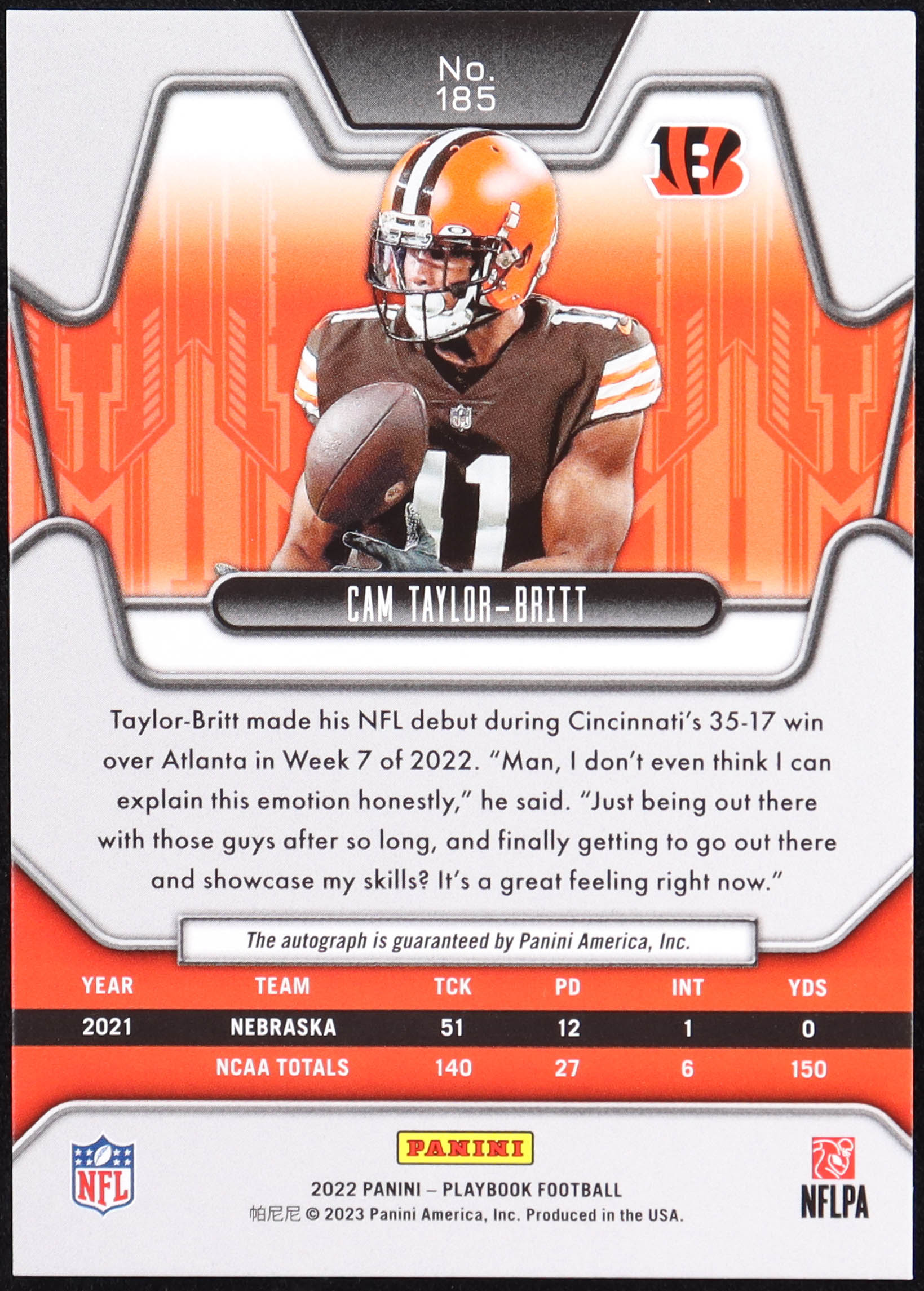 Cameron Taylor-Britt 2022 Panini Playbook Rookie Signatures Blue #185 RC #02/25