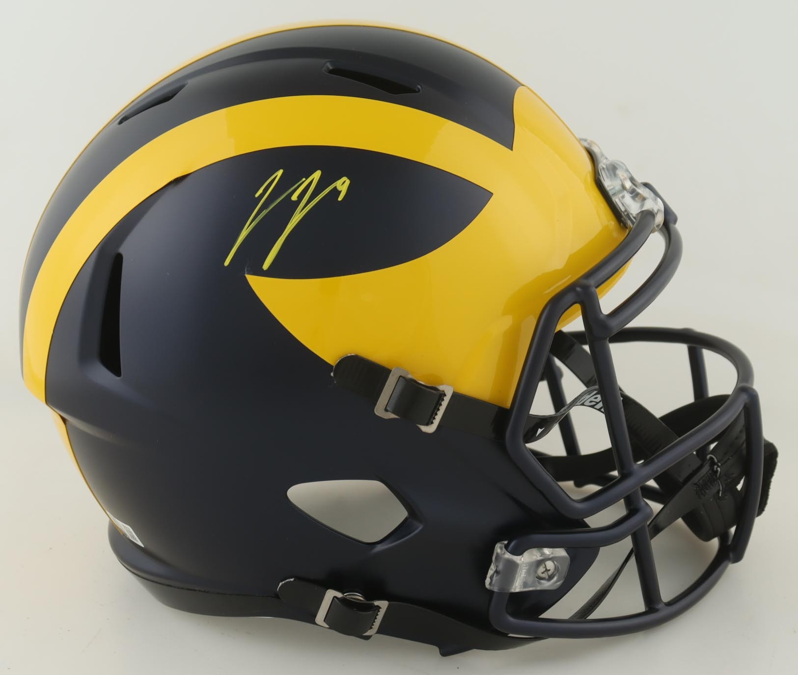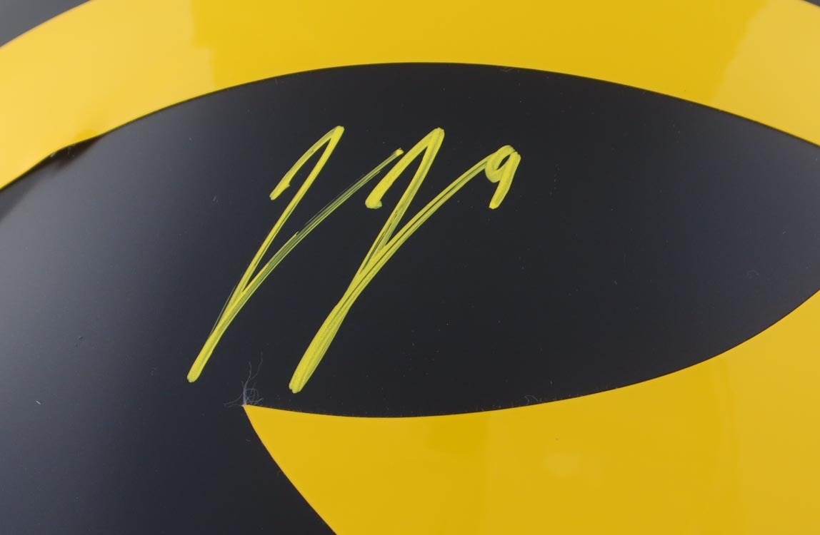 Riddell Michigan Wolverines Full-Size replica Speed Helmet. Hand-signed by J. J. McCarthy.