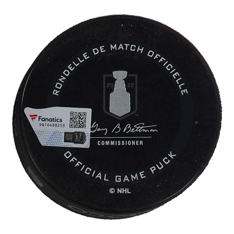 Erik Johnson Signed 2022 Stanley Cup Official Game Hockey Puck (Fanatics)