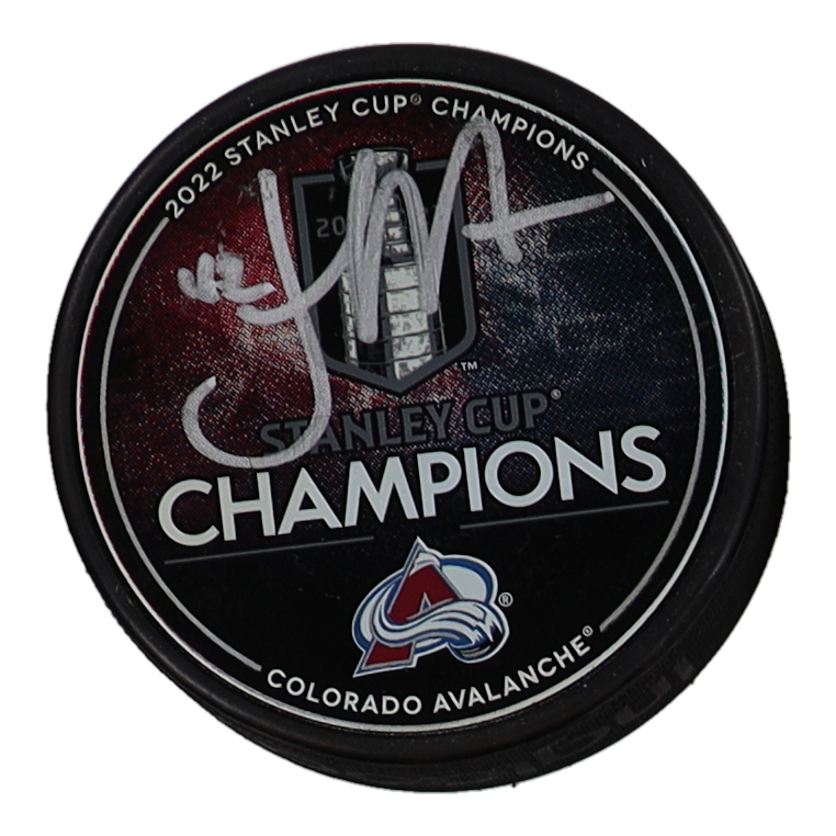 Josh Manson Signed Avalanche 2022 Stanley Cup Champions Logo Hockey Puck (Fanatics)