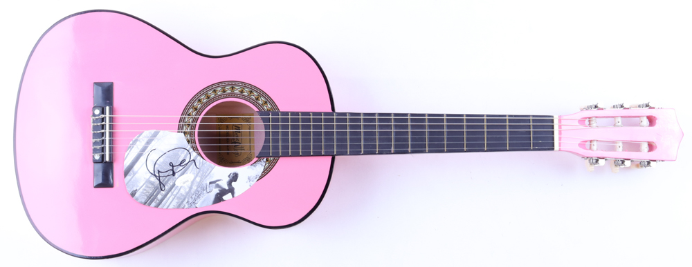 Music Alley acoustic guitar measures approximately 35" in length and has been hand-signed on a CD cover that has been repurposed as a pick-guard by Taylor Swift.