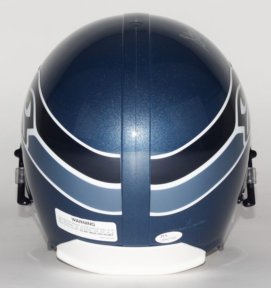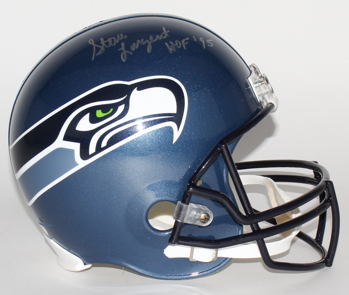 Seattle Seahawks Full-Size Replica Helmet. Hand-signed and inscribed in silver paint pen by Steve Largent (HOF).