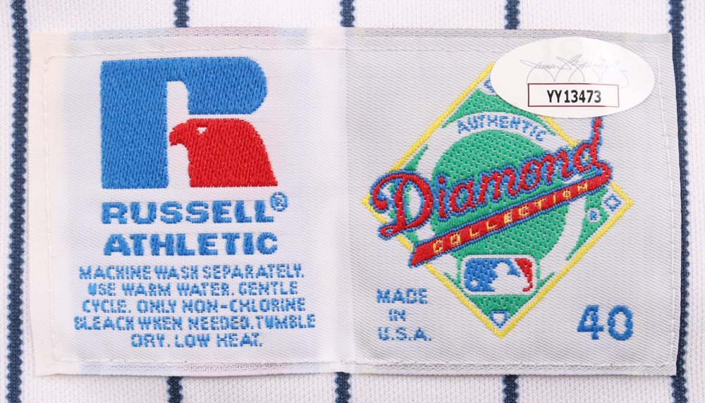 Russell Athletics Diamond Collection jersey. Everything is sewn on, size 40. Has been hand-signed by Tony Gwynn (D. 2014, San Diego Padres, HOF).