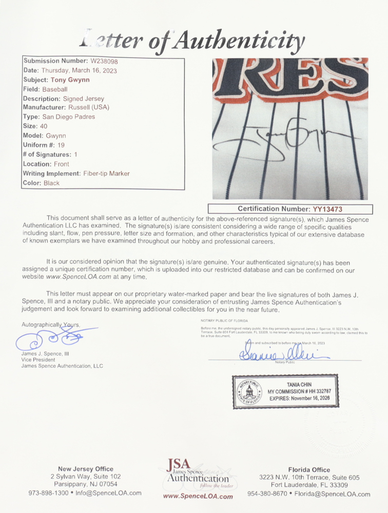 Tony Gwynn Signed Padres Jersey (JSA)