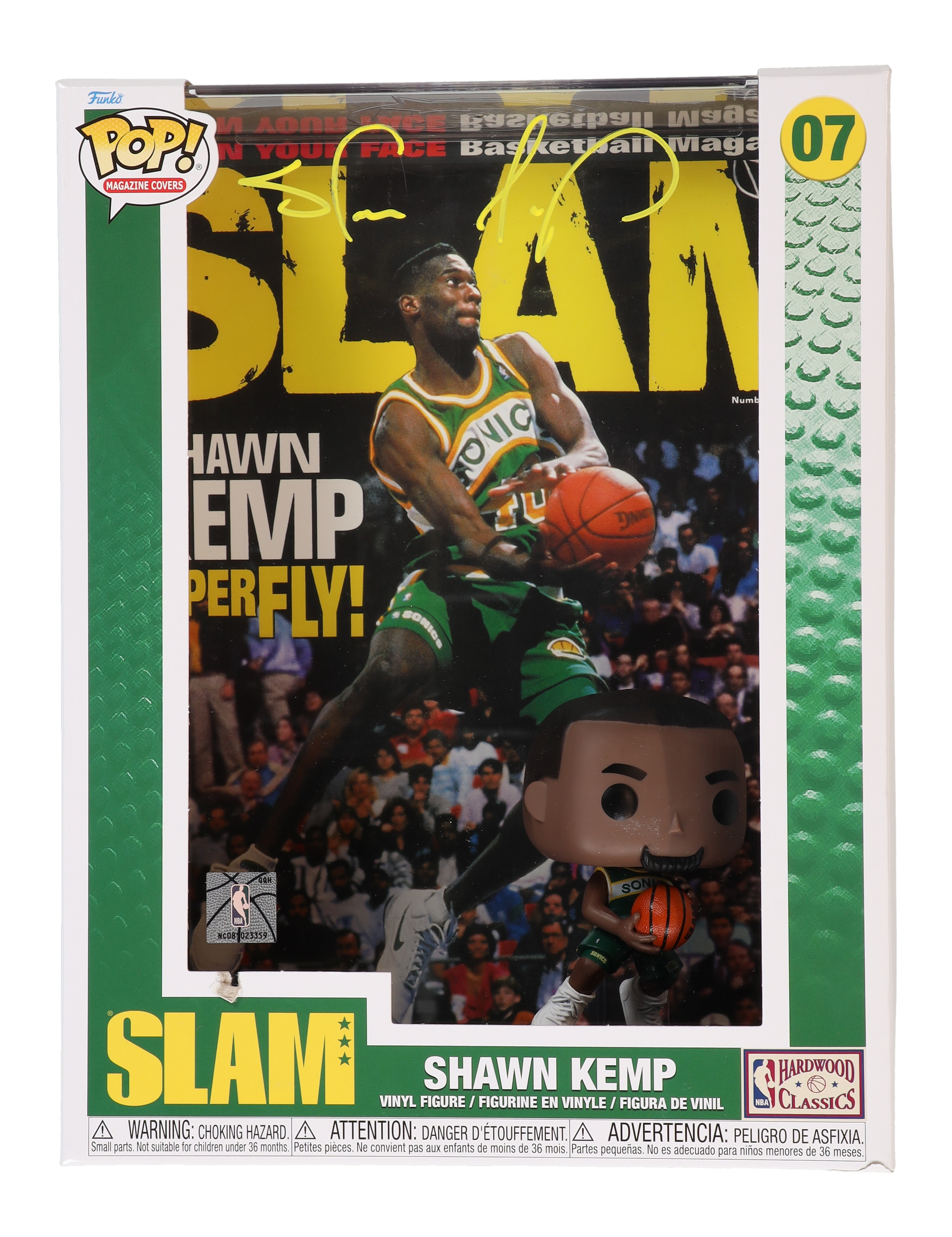 Shawn Kemp Signed Supersonics #07 NBA SLAM Funko Pop! Cover Vinyl Figure (Beckett)
