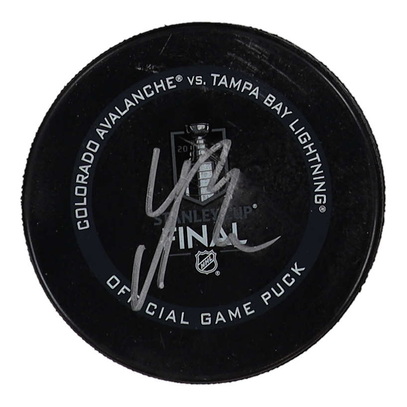 2022 Stanley Cup Final hockey puck has been hand-signed by Valeri Nichushkin (Colorado Avalanche). Please note, the signature is smudged.