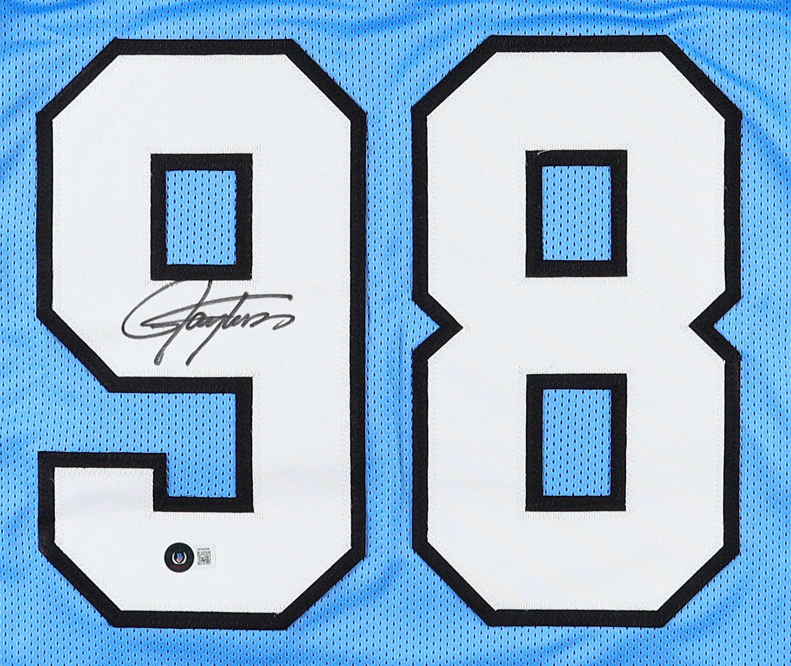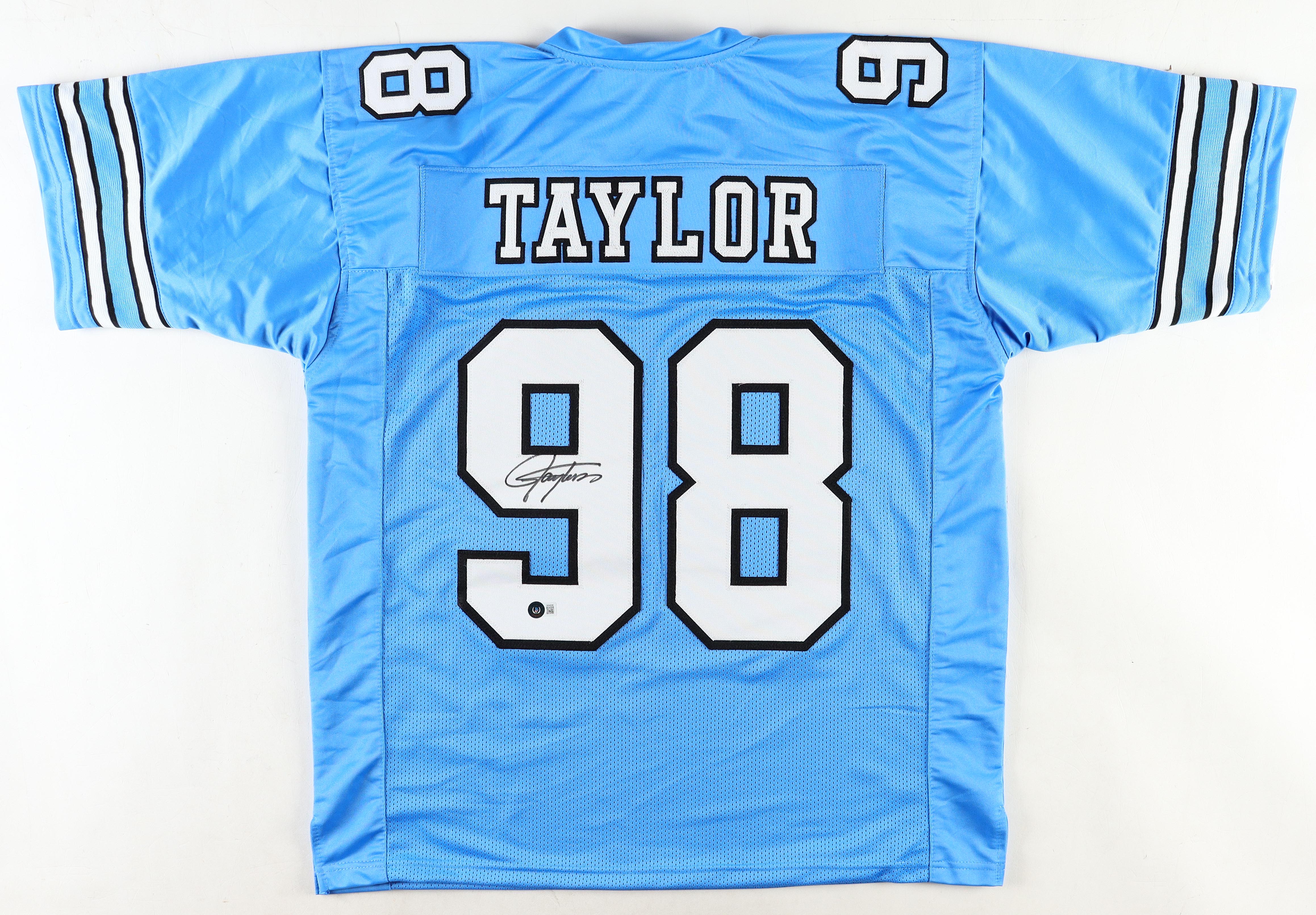 Custom jersey. Everything sewn on, size XL. Hand-signed by Lawrence Taylor (HOF).
