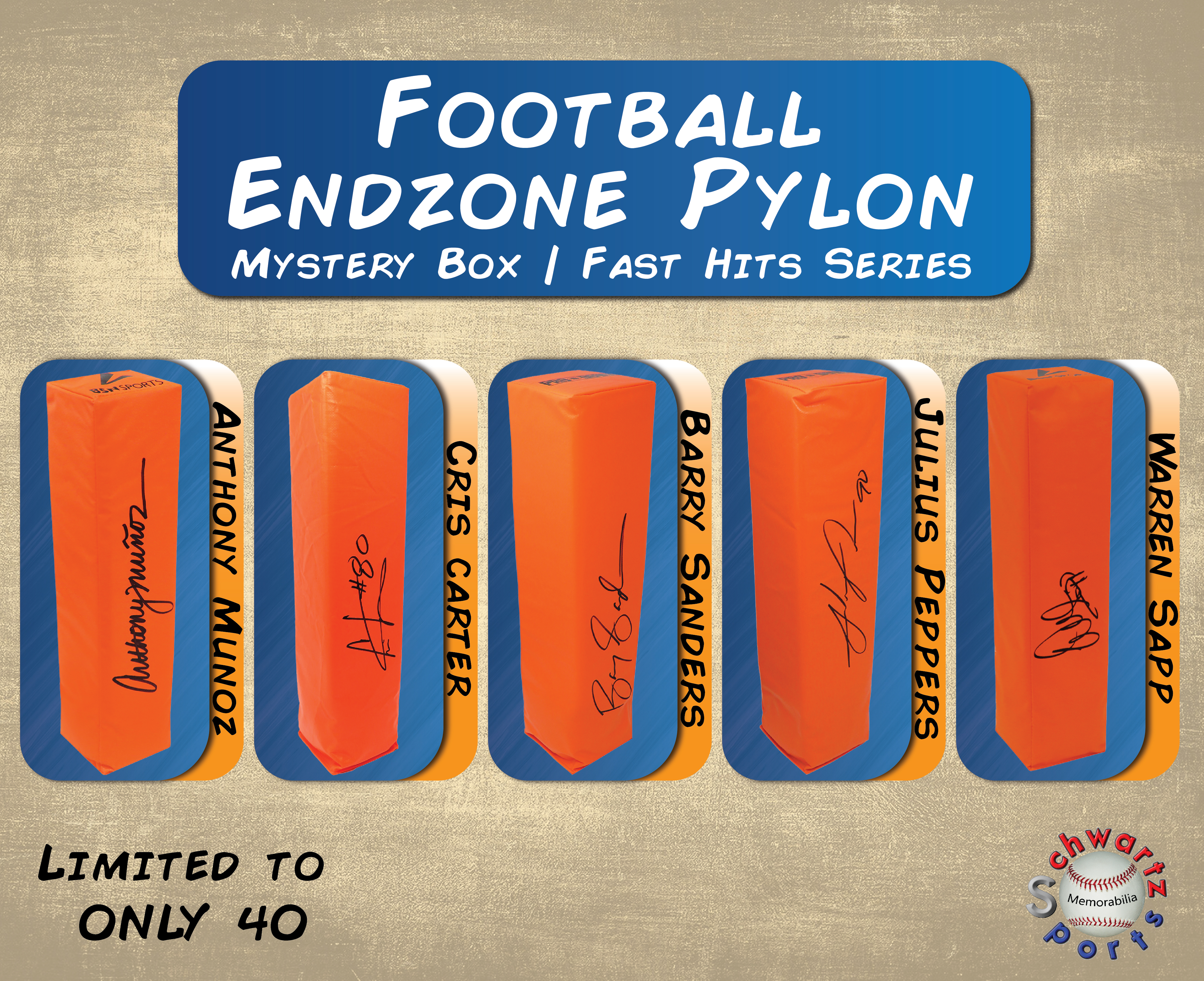 Football Endzone Pylon Signed Mystery Box – FAST HITS Series 5 (Limited to 40) – Schwartz Sports