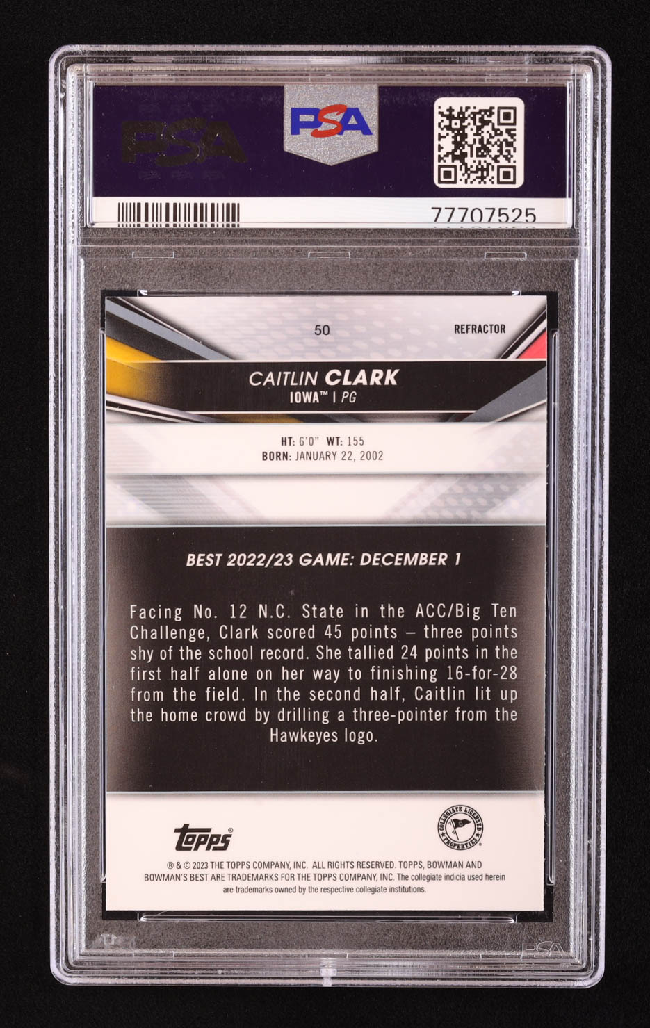 Caitlin Clark 2022-23 Bowman's Best University Refractors #50 RC (PSA 10)