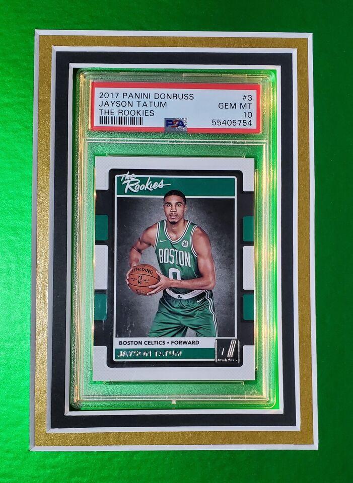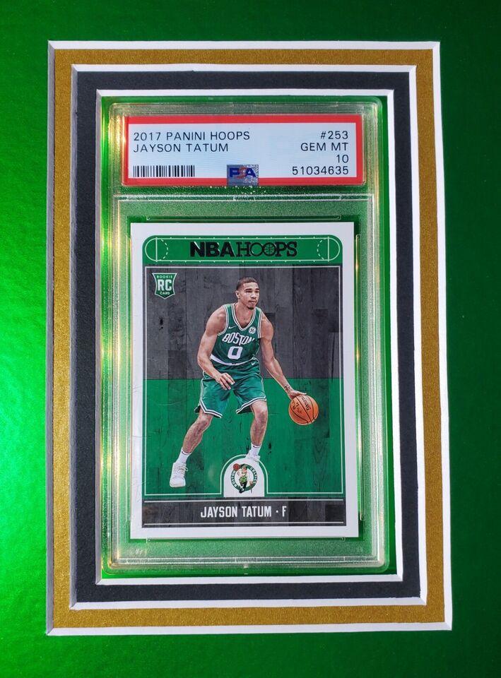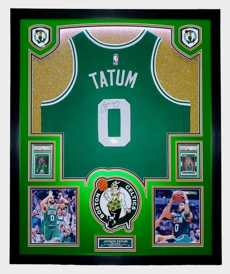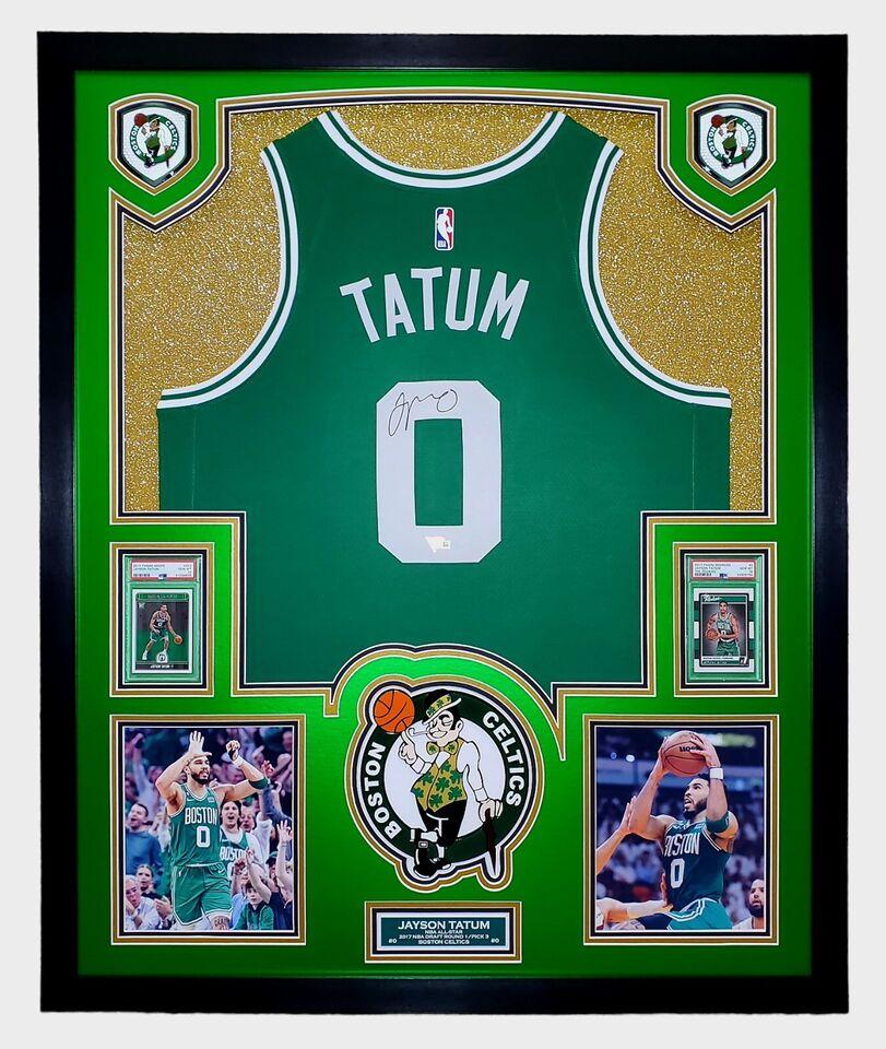 Jayson Tatum Signed Celtics Custom Framed Nike Jersey with LED Display & (2) PSA 10 Graded Rookie Cards (Fanatics)