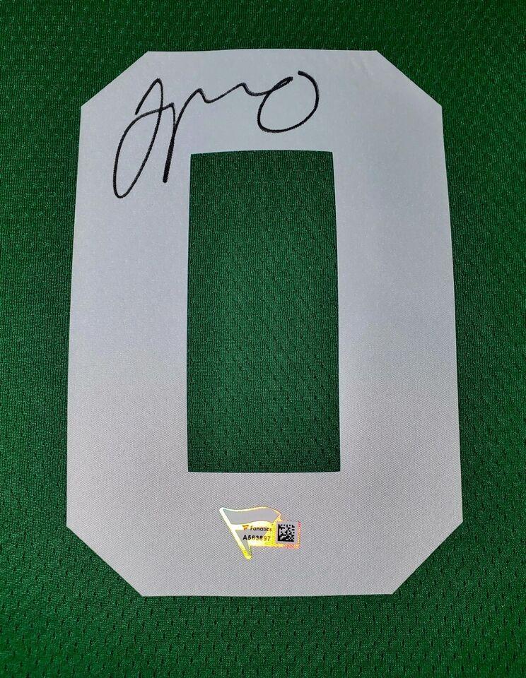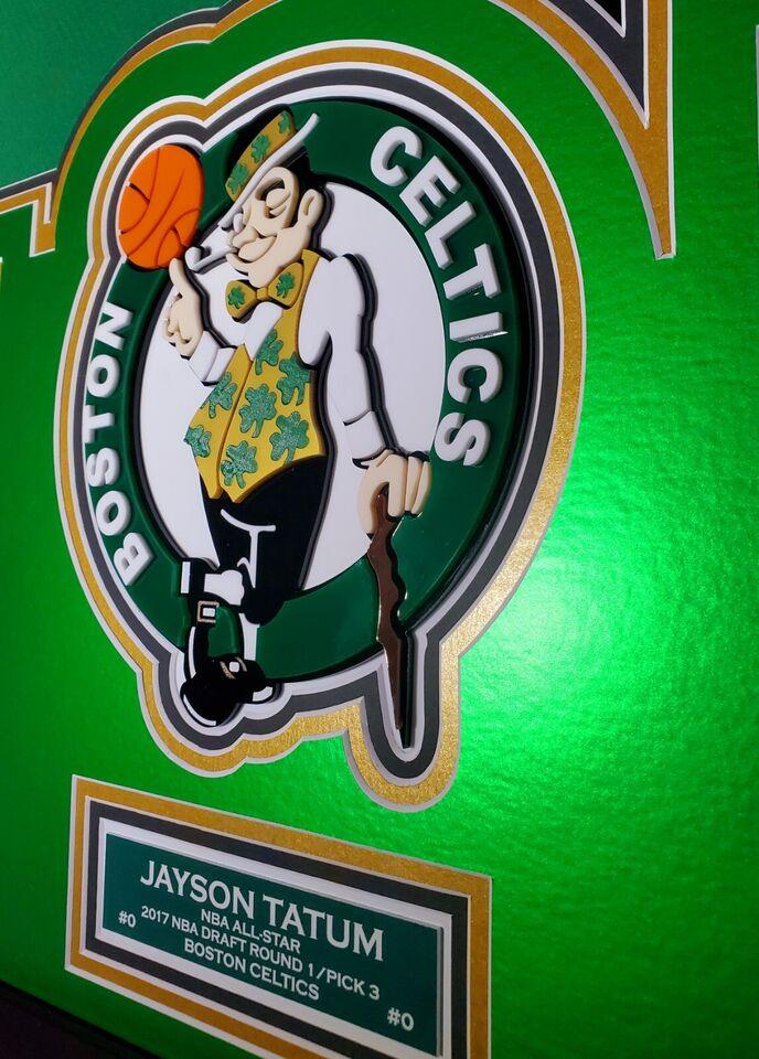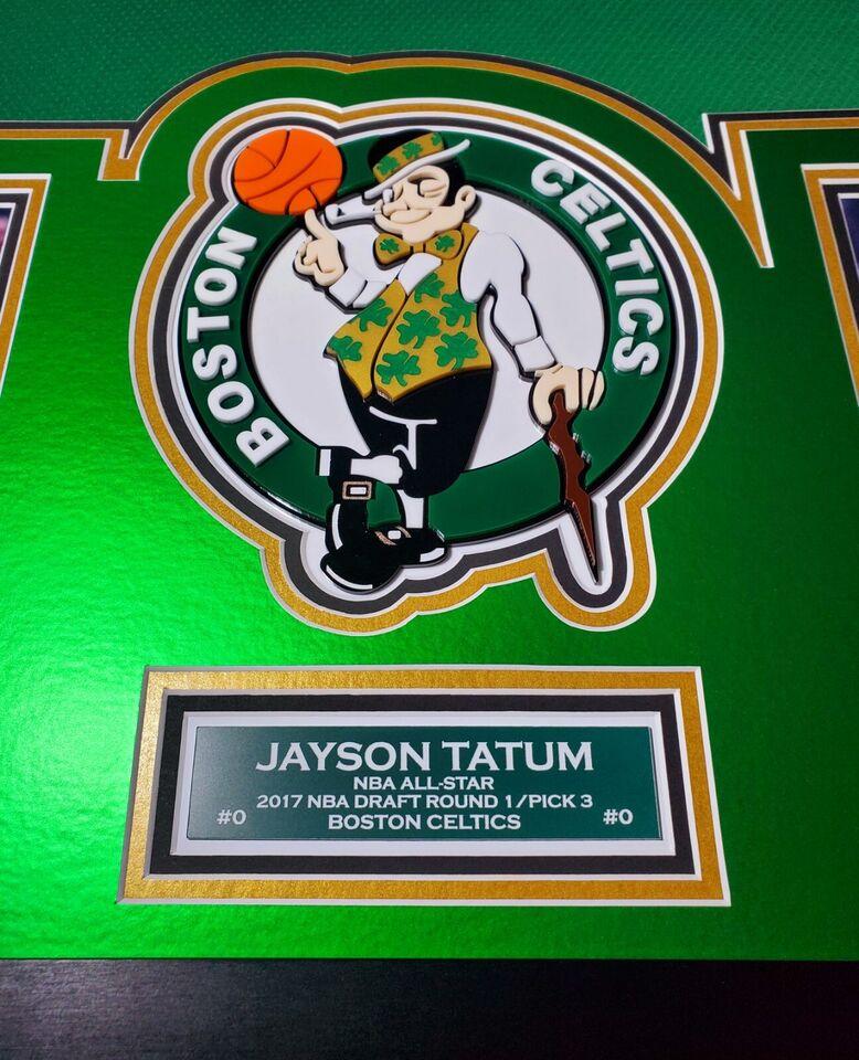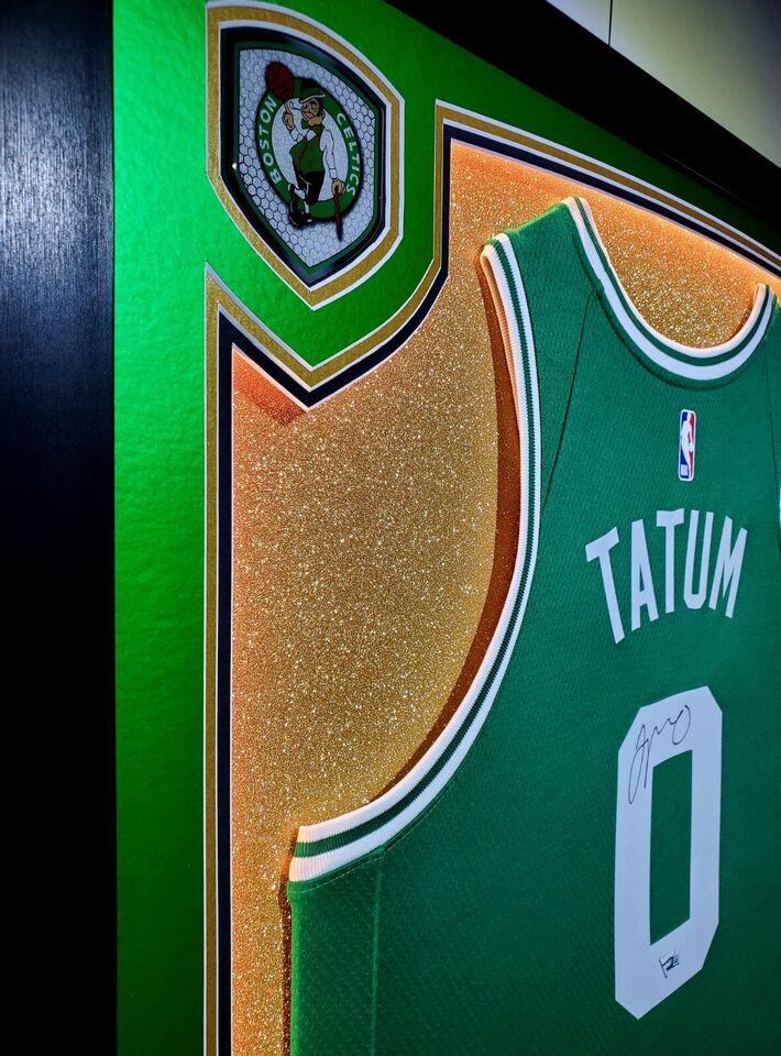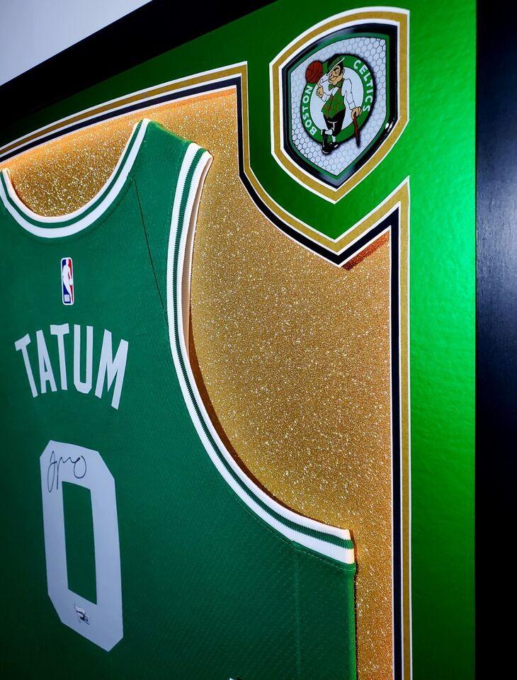 Custom display measures 33" x 42" in size and features a Nike Swingman jersey hand-signed Jayson Tatum (Boston Celtics).