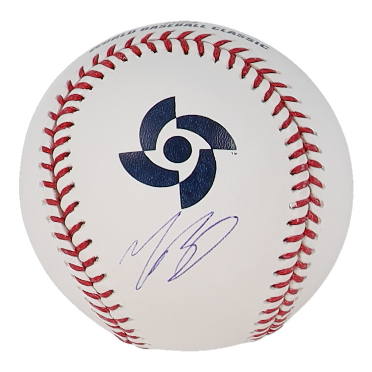 Rawlings 2023 World Baseball Classic logo baseball has been hand-signed by Mookie Betts (Los Angeles Dodgers).