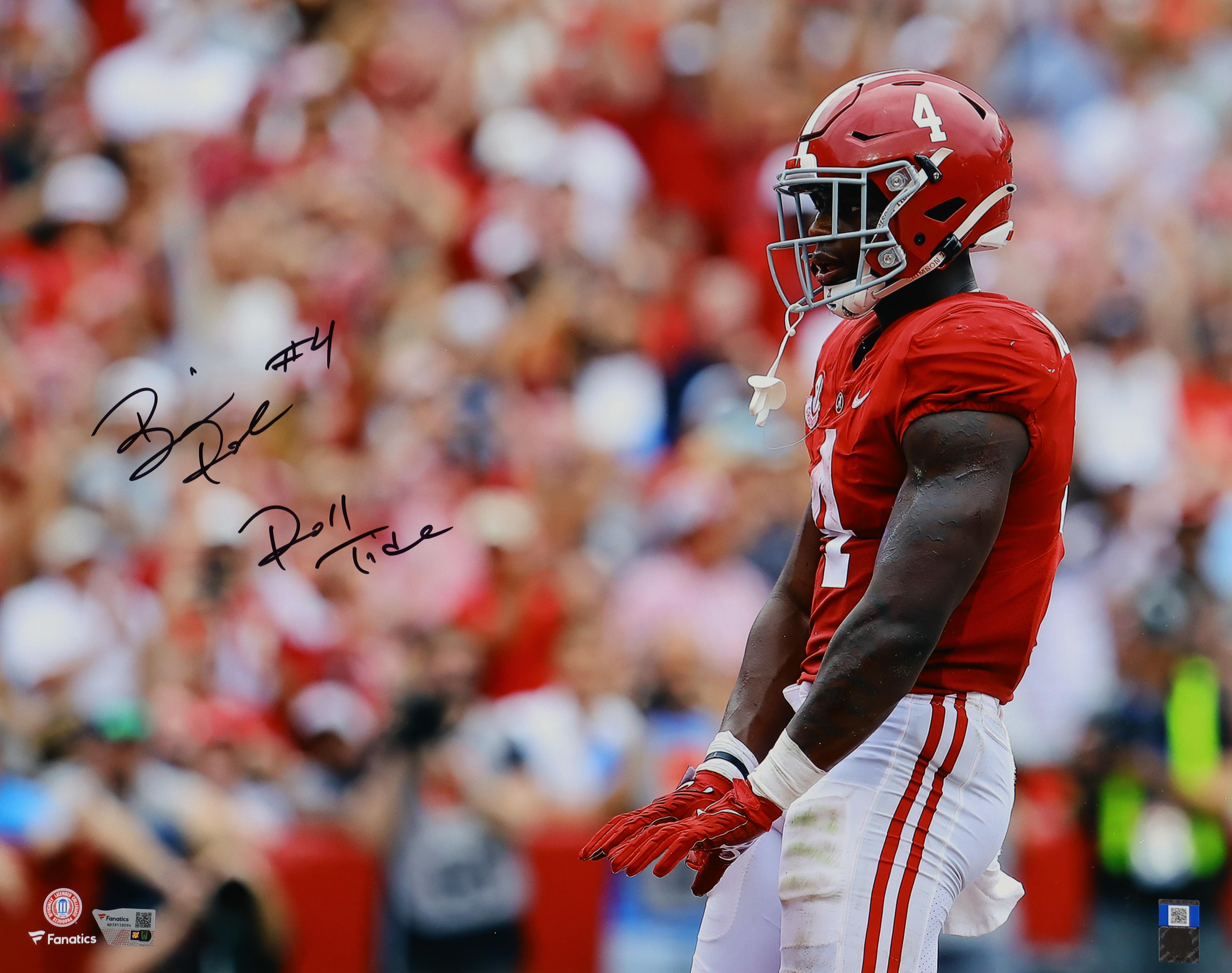 Photo measures 16" x 20" and has been hand-signed & inscribed by Brian Robinson (Alabama Crimson).