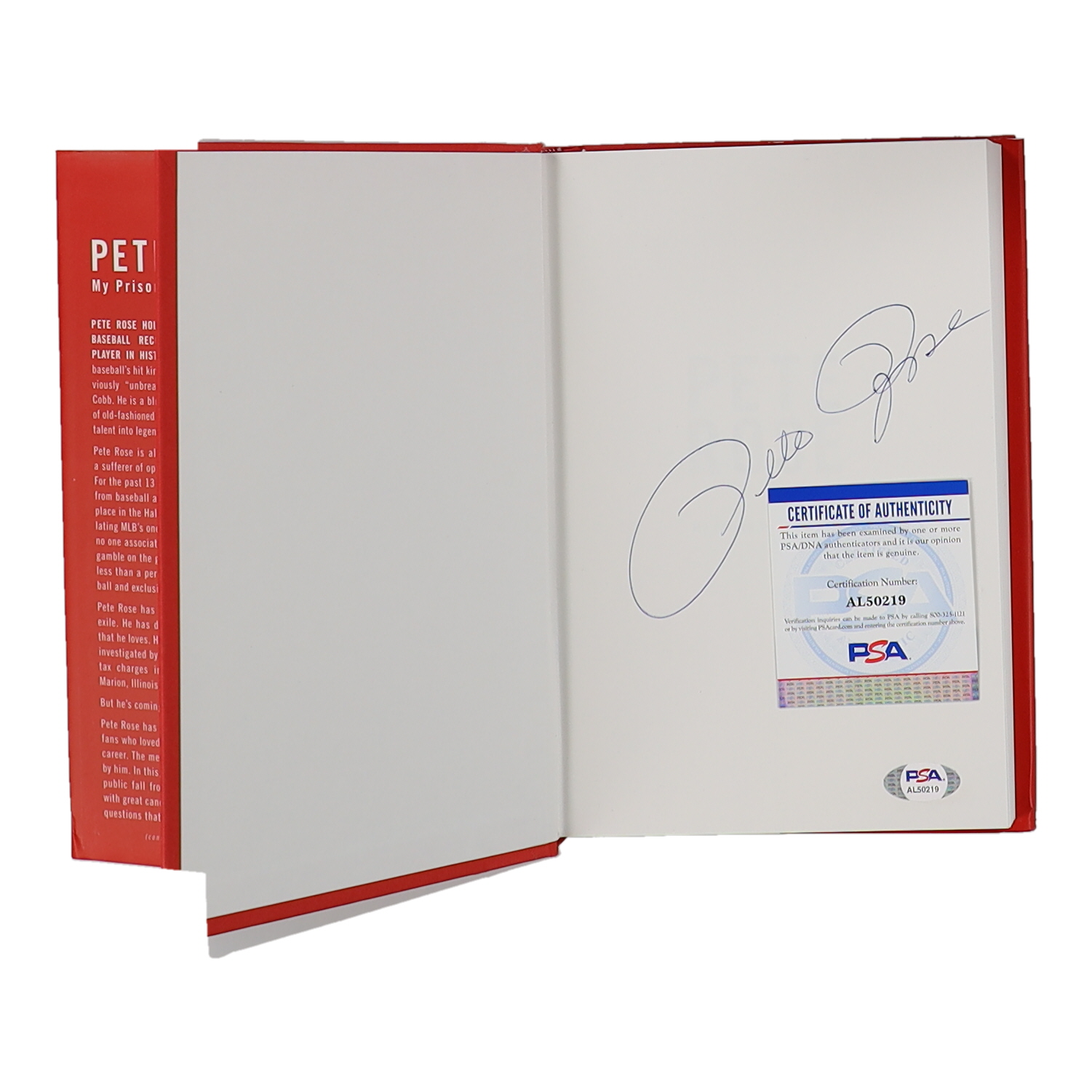 "My Prison Without Bars" hardcover book has been hand-signed on the inside cover page by Pete Rose (Cincinnati Reds). Please note, there is some scuffing on the dust jacket of the book.
