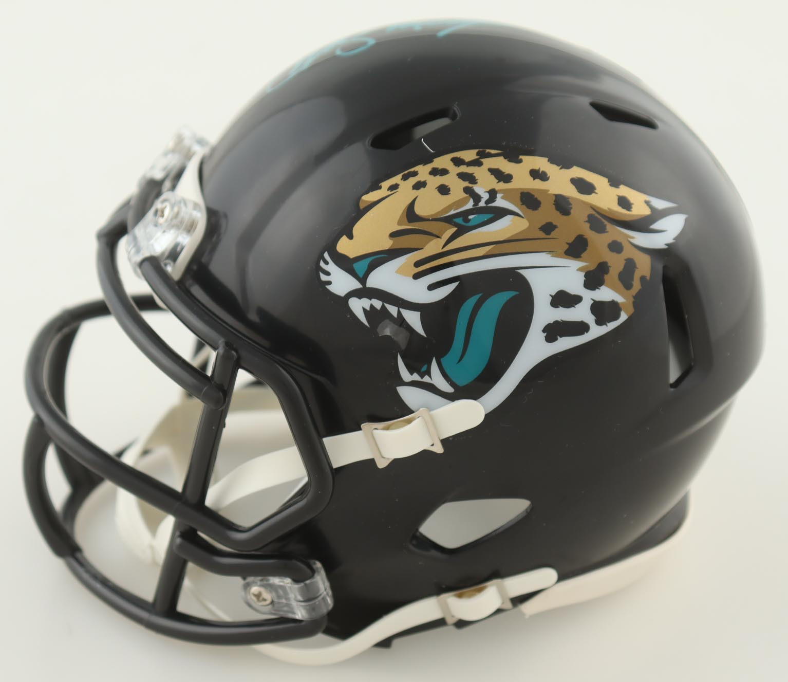 Riddell Jacksonville Jaguars Speed mini helmet has been hand-signed by Jimmy Smith.