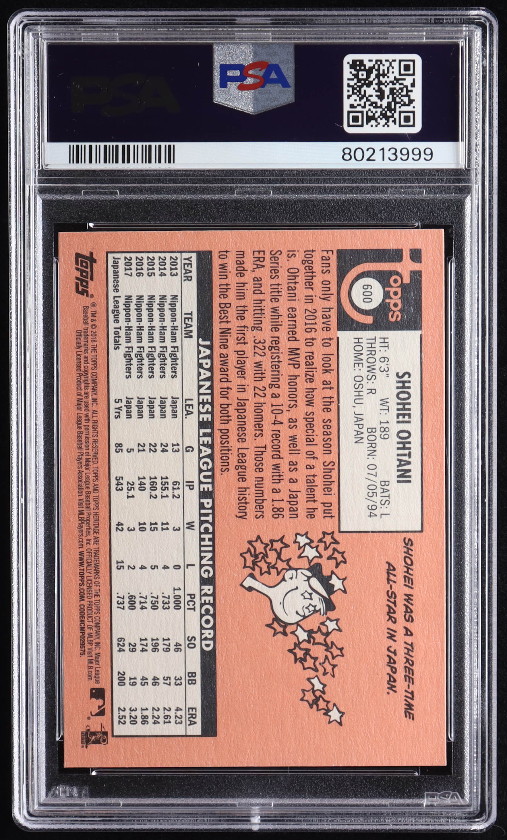 Shohei Ohtani 2018 Topps Heritage #600 RC (PSA 10)