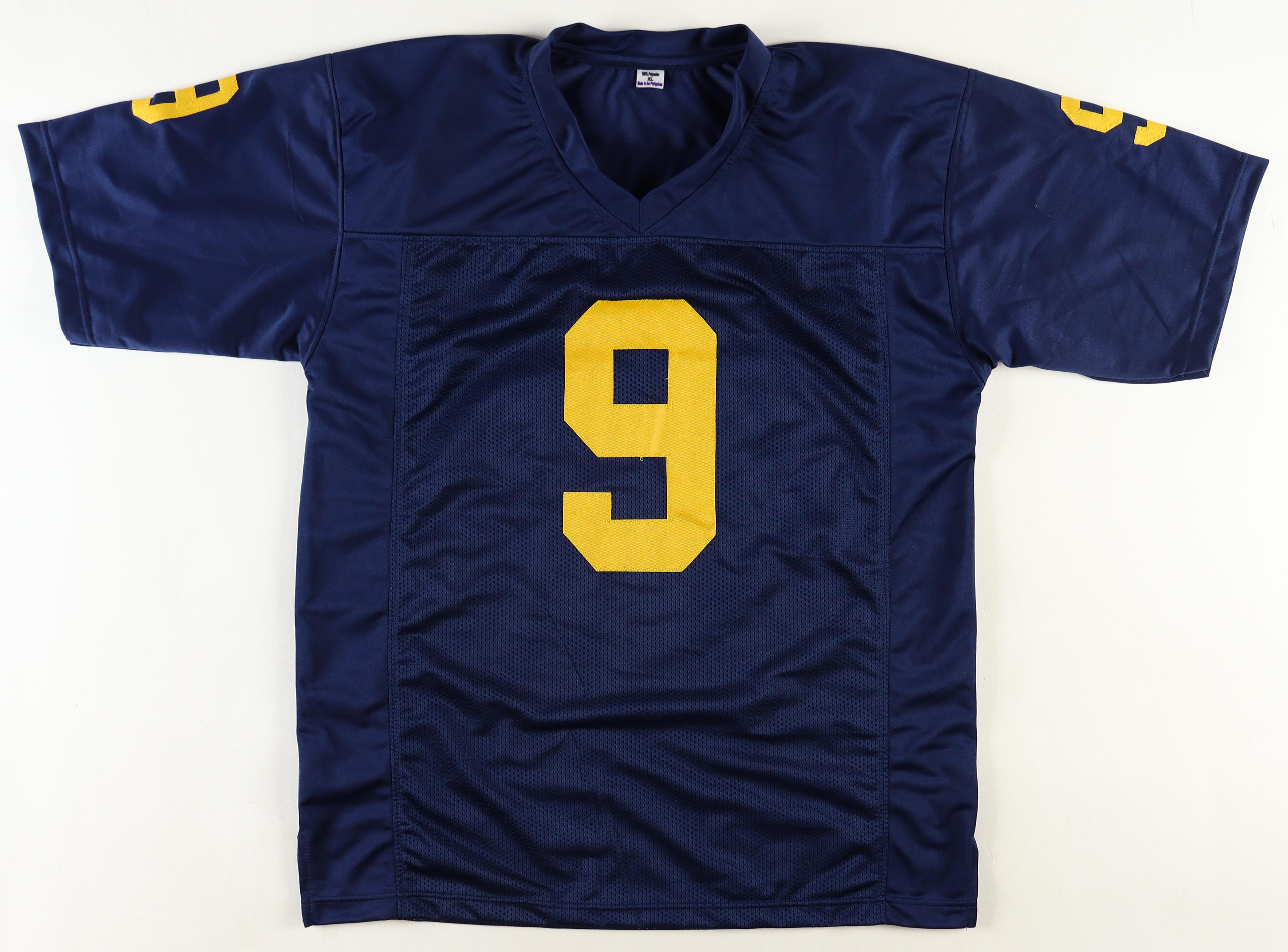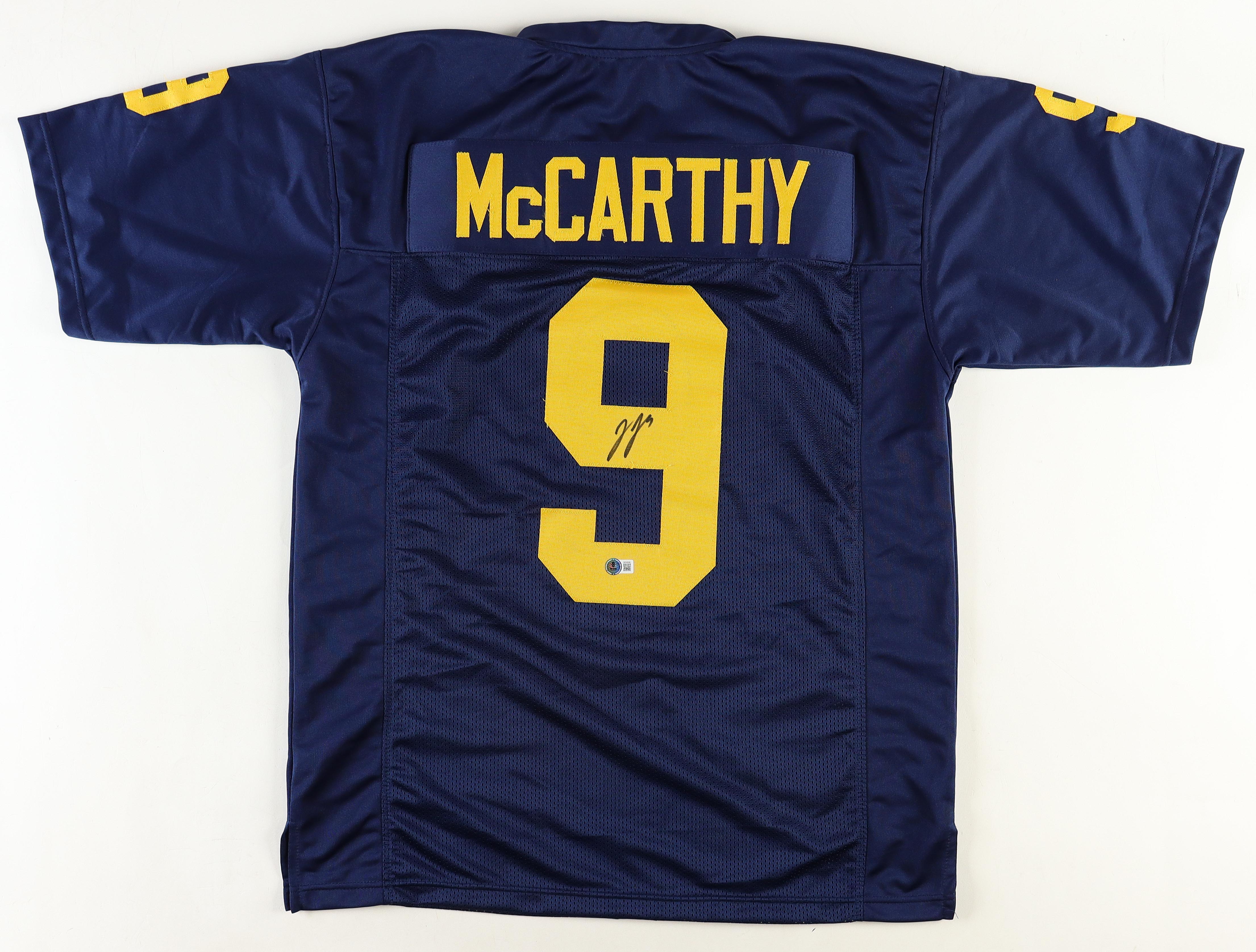 Custom jersey. Everything is sewn on, size XL. Hand-signed by J. J. McCarthy.