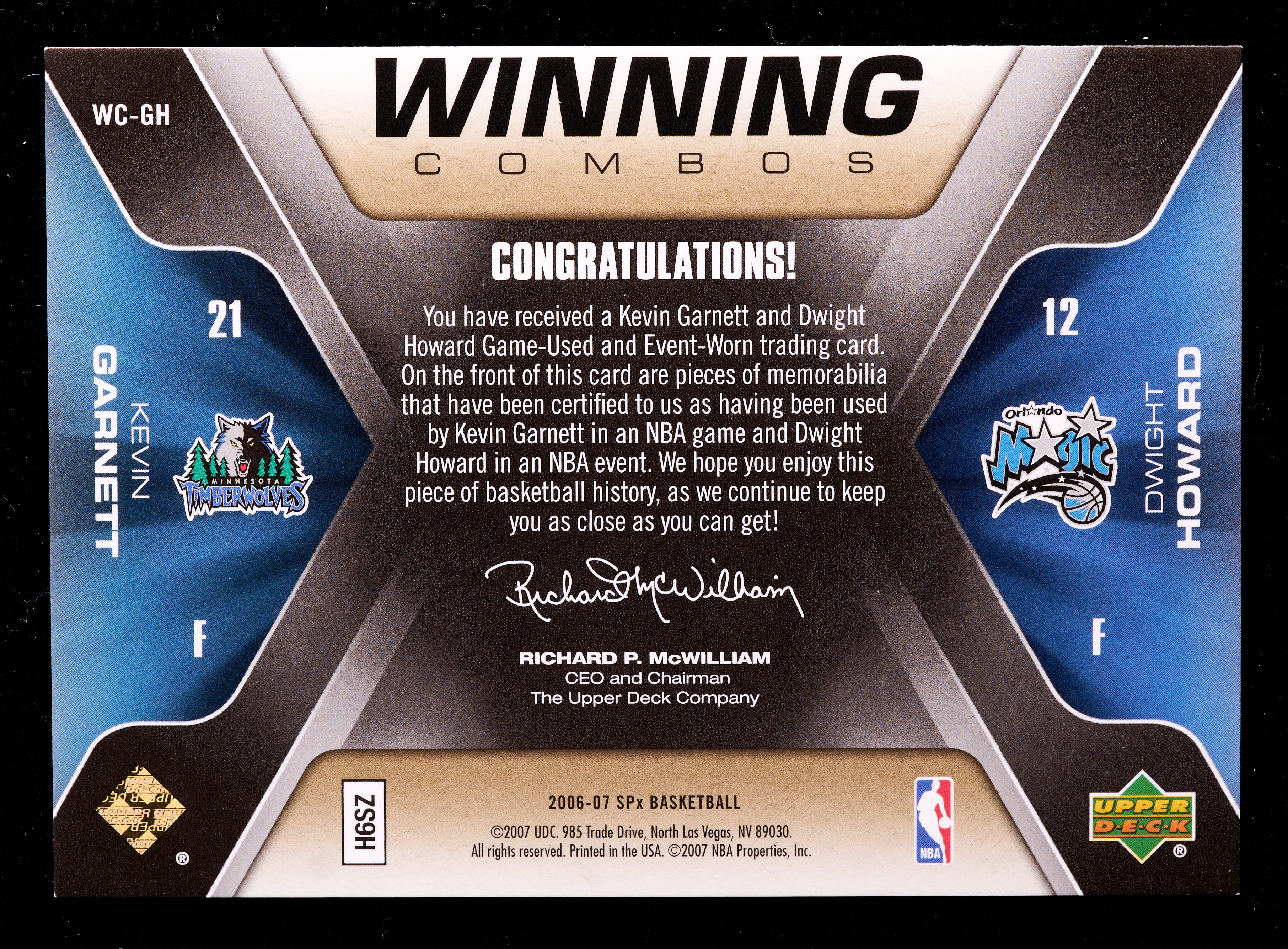Kevin Garnett & Dwight Howard 2006 Jersey Swatches Winning Combos #WC-GH