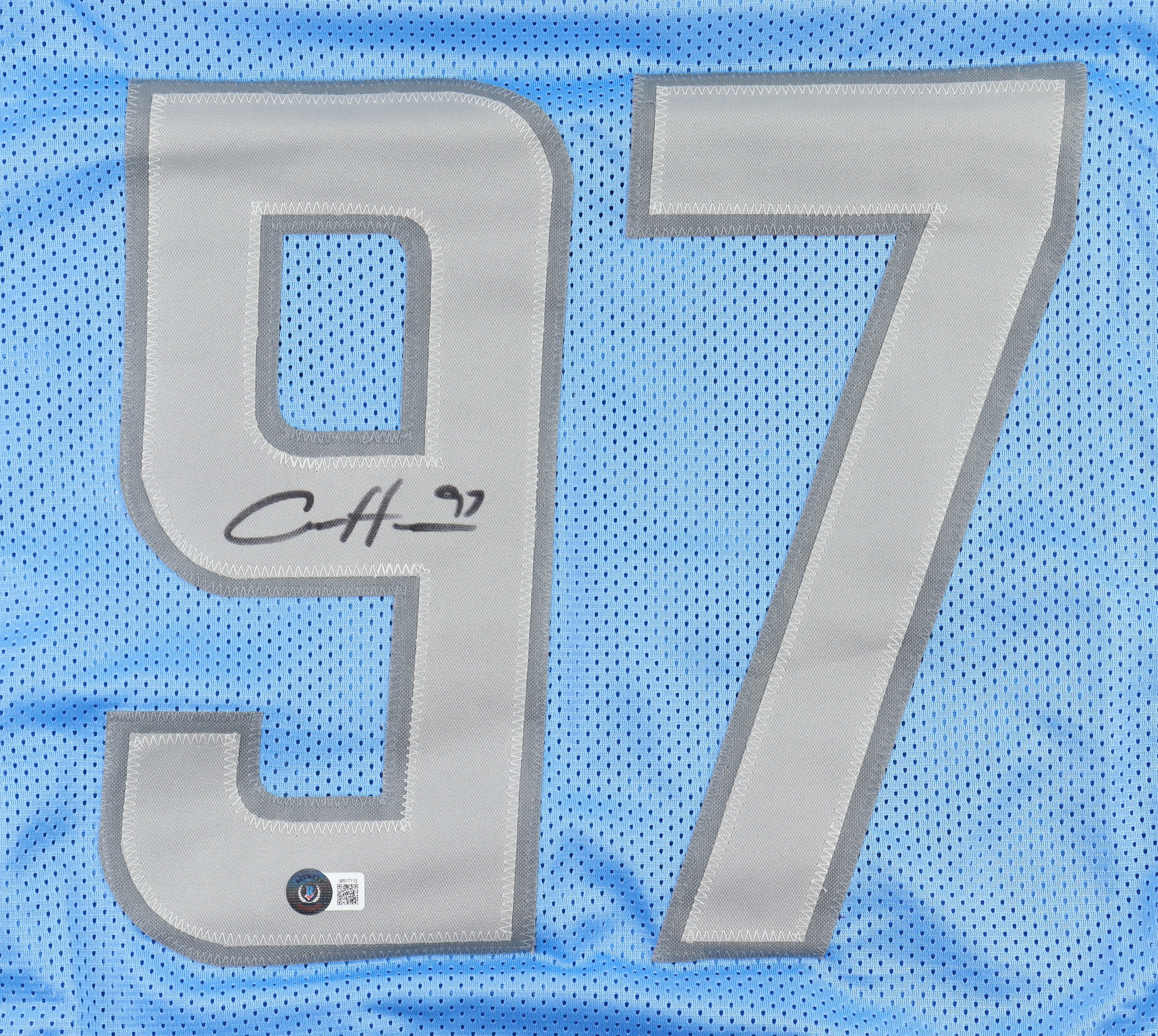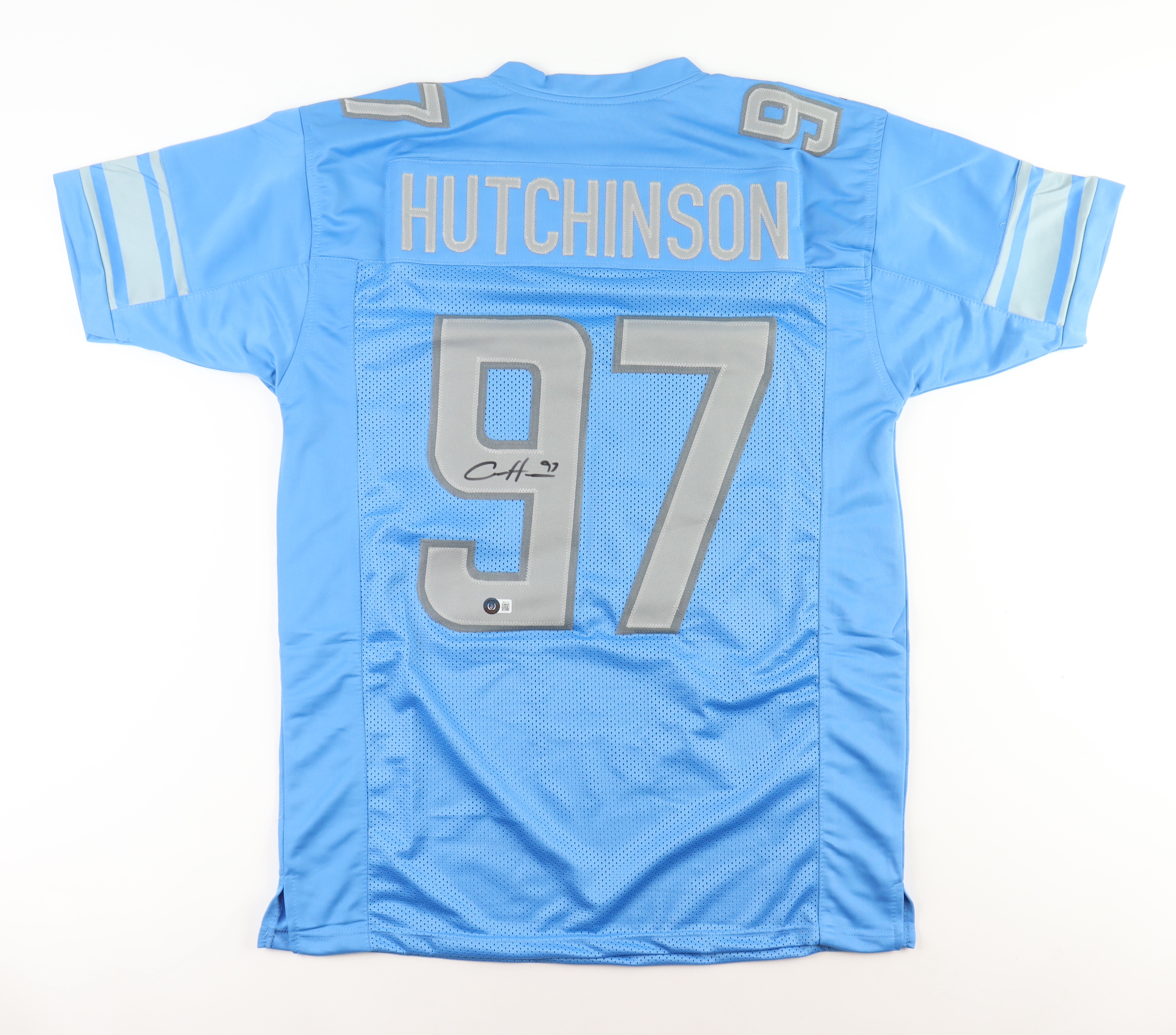 Custom jersey with everything sewn on, size XL. Hand-signed by Aidan Hutchinson.