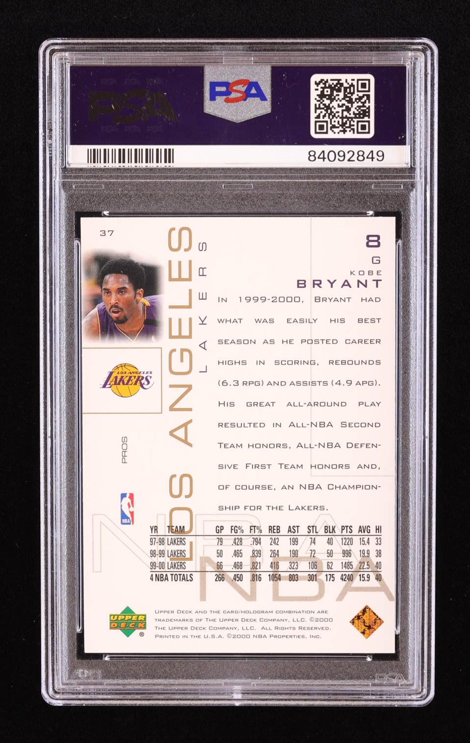 Kobe Bryant 2000-01 Upper Deck Pros and Prospects #37 (PSA 10)