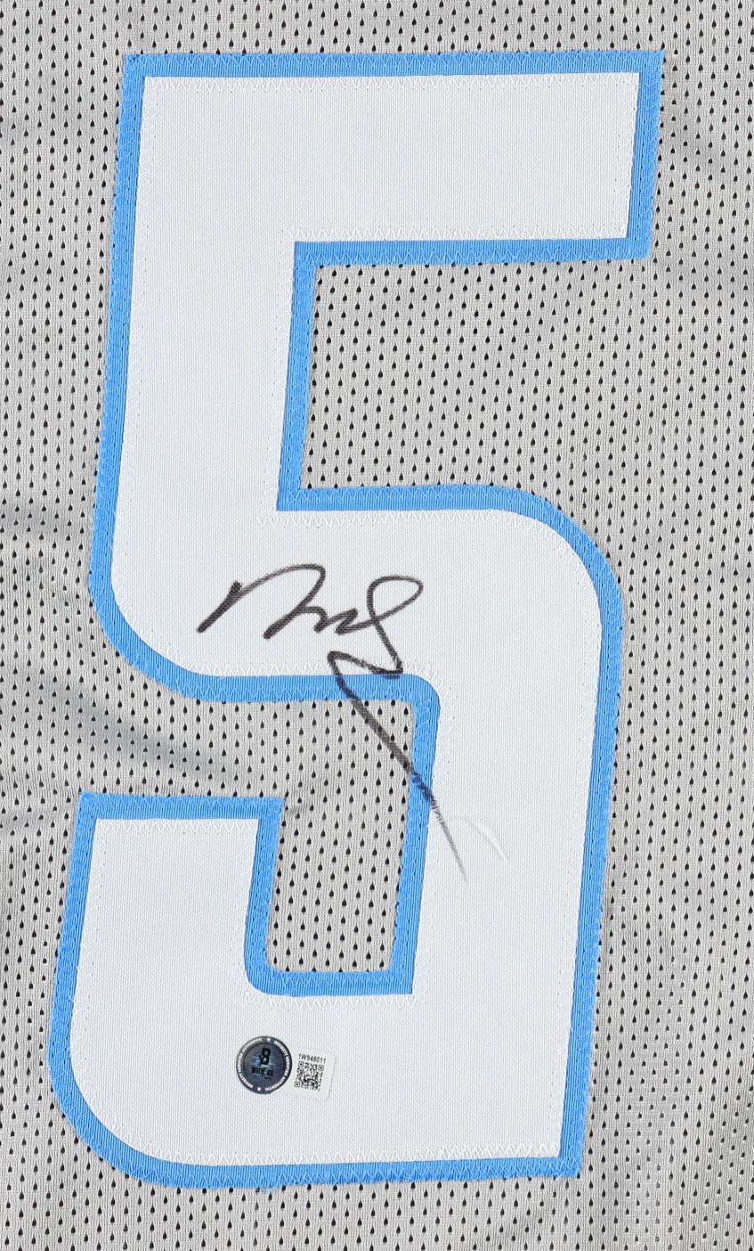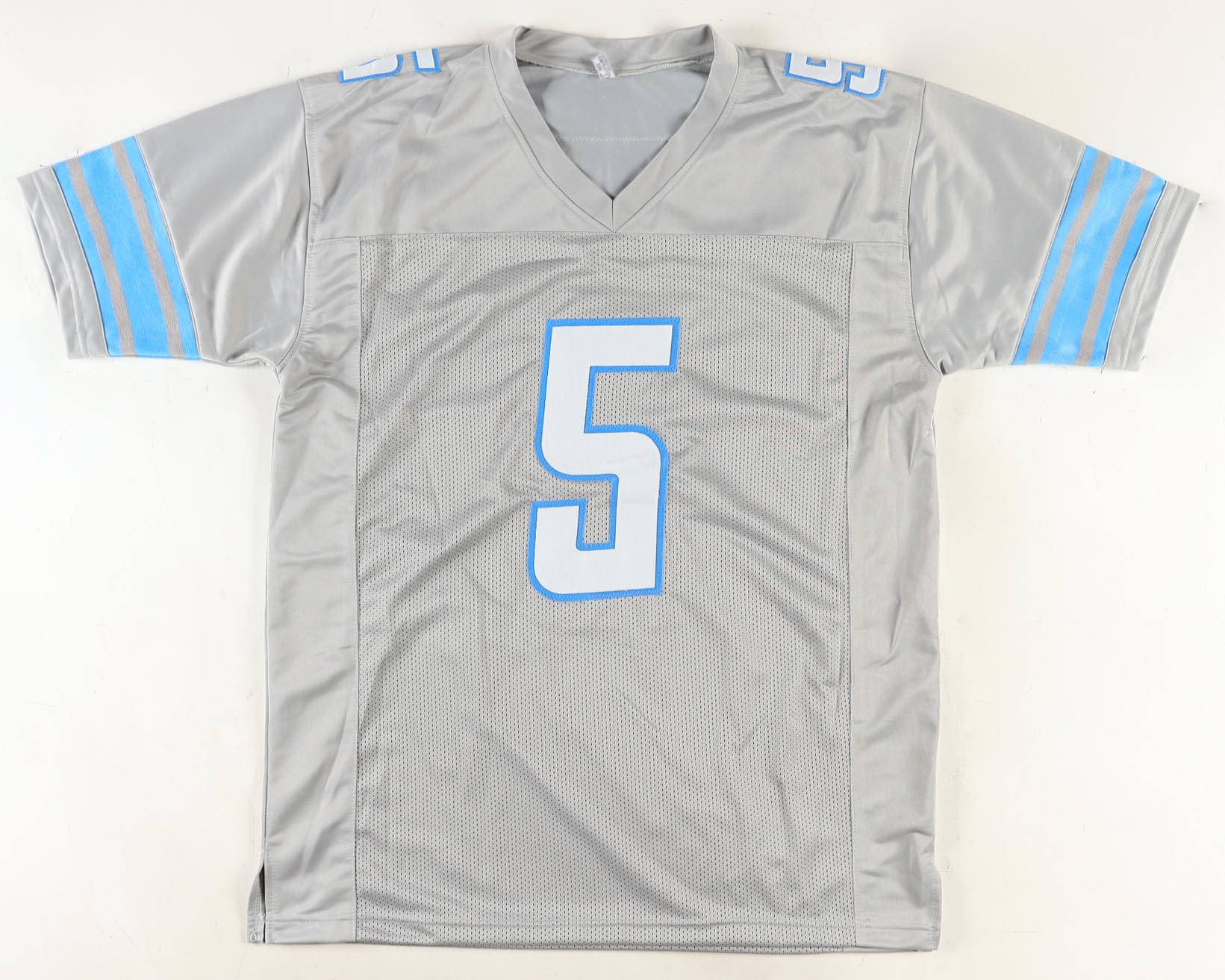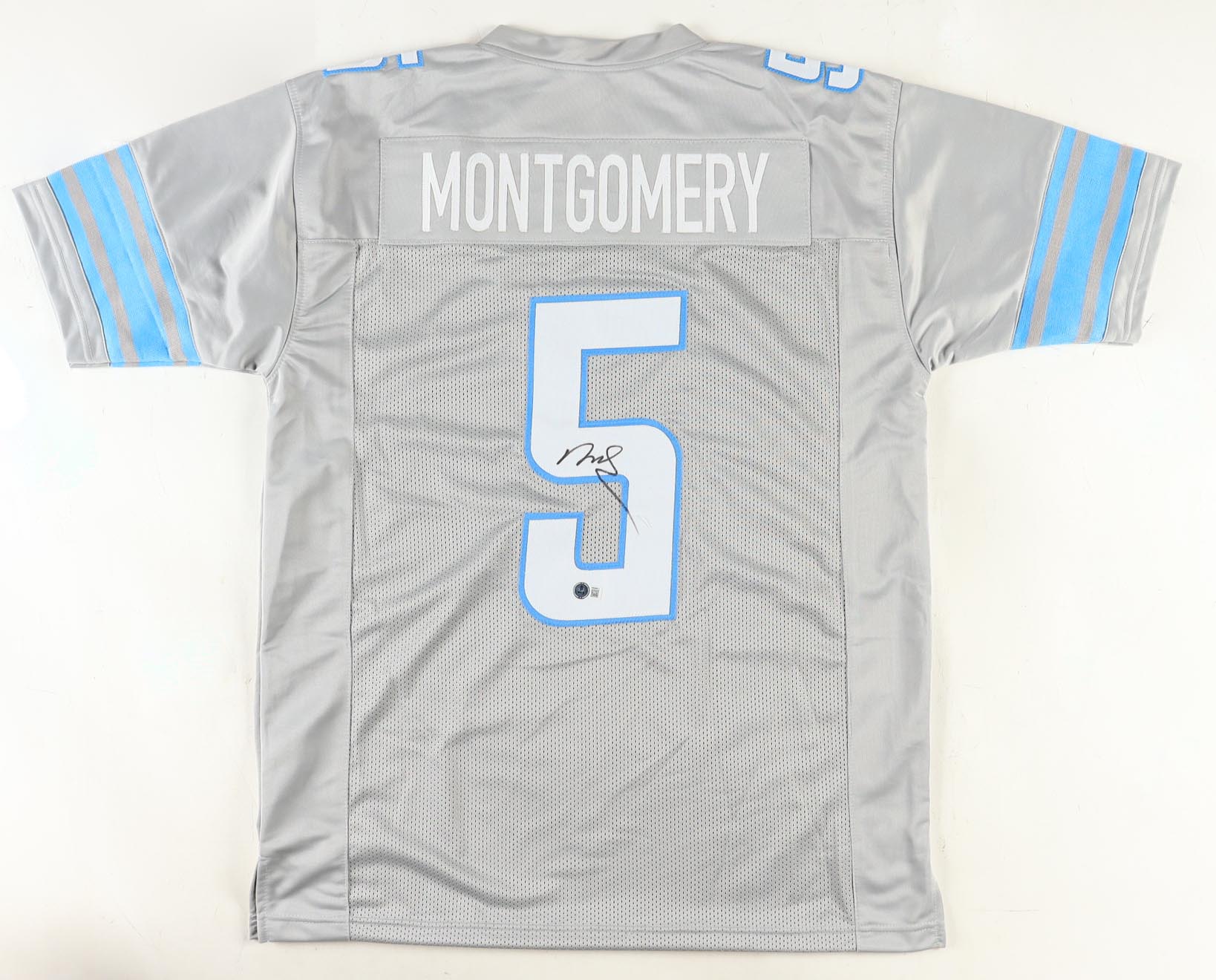 Custom jersey with everything sewn on, size XL. Hand-signed by David Montgomery.