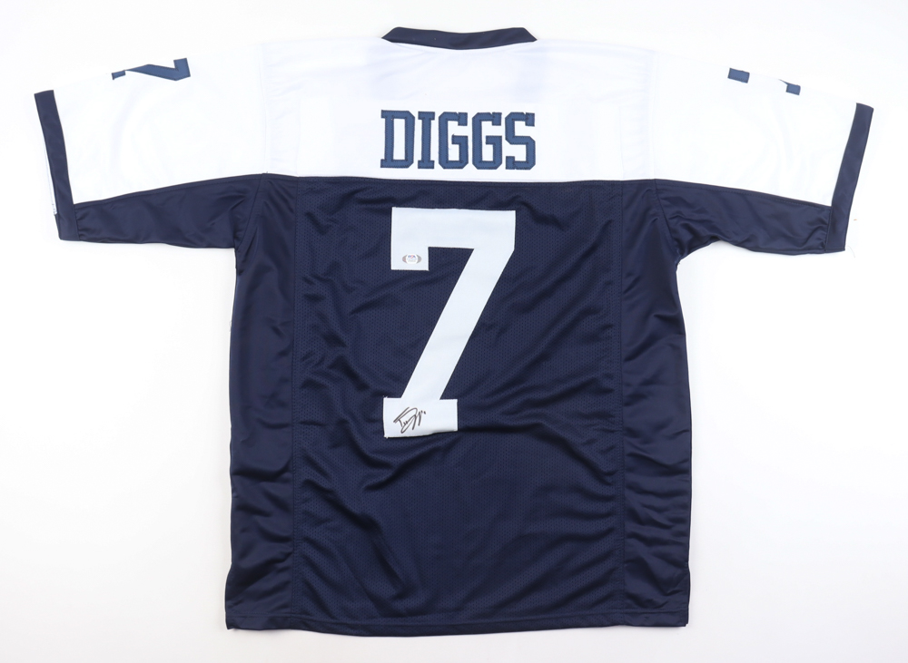 Custom jersey. Everything is sewn on, size XL. Hand-signed by Trevon Diggs. Please note, glue is visible through the front and reverse numbers.