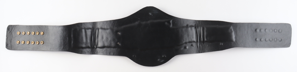 WWE Full-Size replica championship title belt measures approximately 49.5" has been hand-signed and inscribed on the strap by Mick Foley (Mankind).