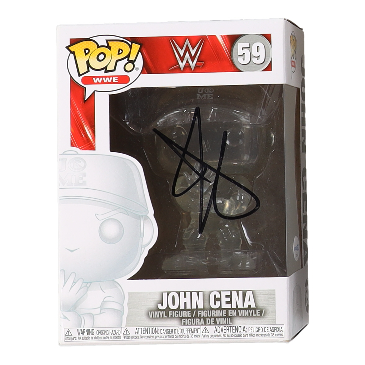 Funko Pop! figure measures approximately 4" tall. Hand-signed on the packaging by John Cena. Please note, the packaging window has been swapped.