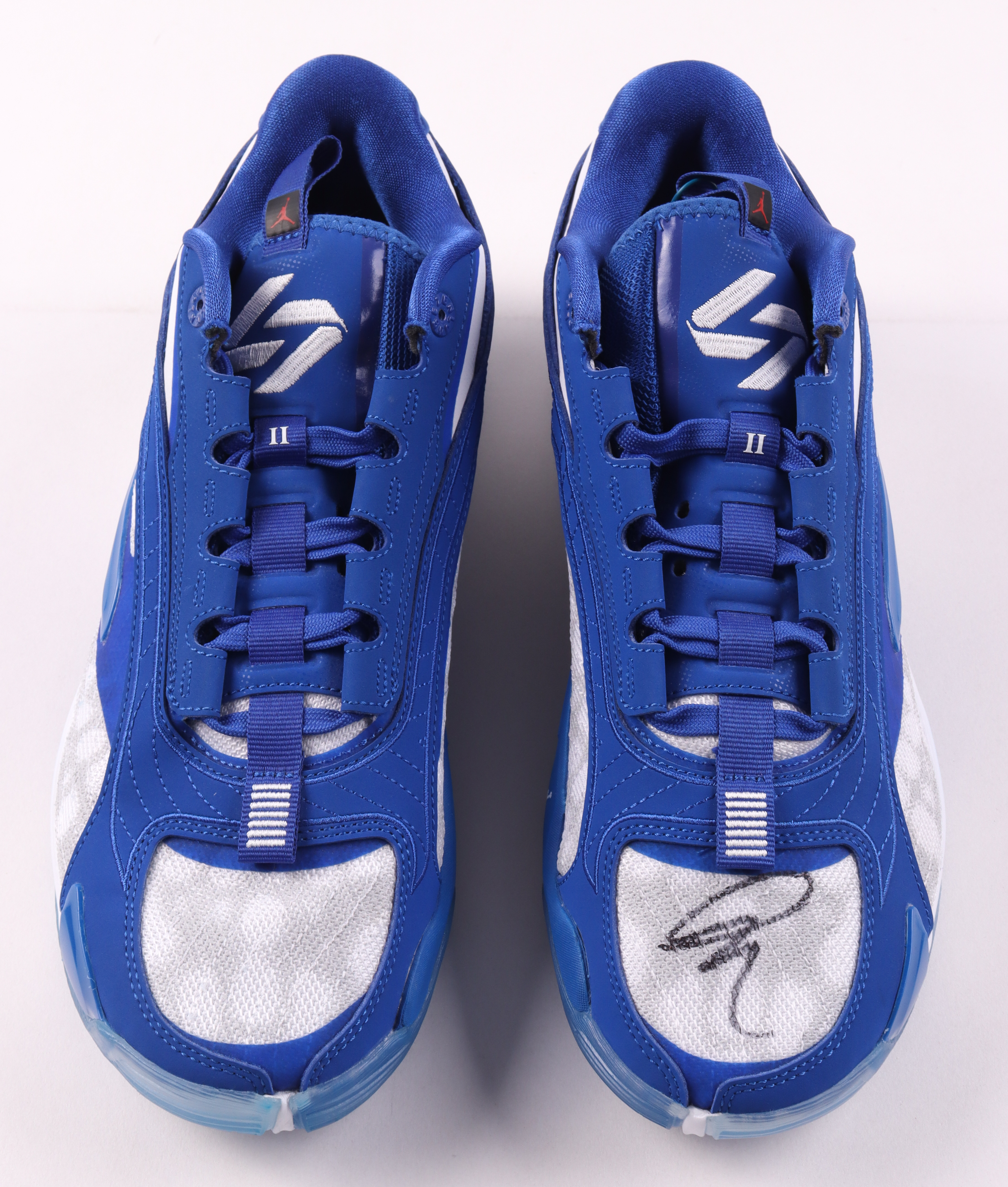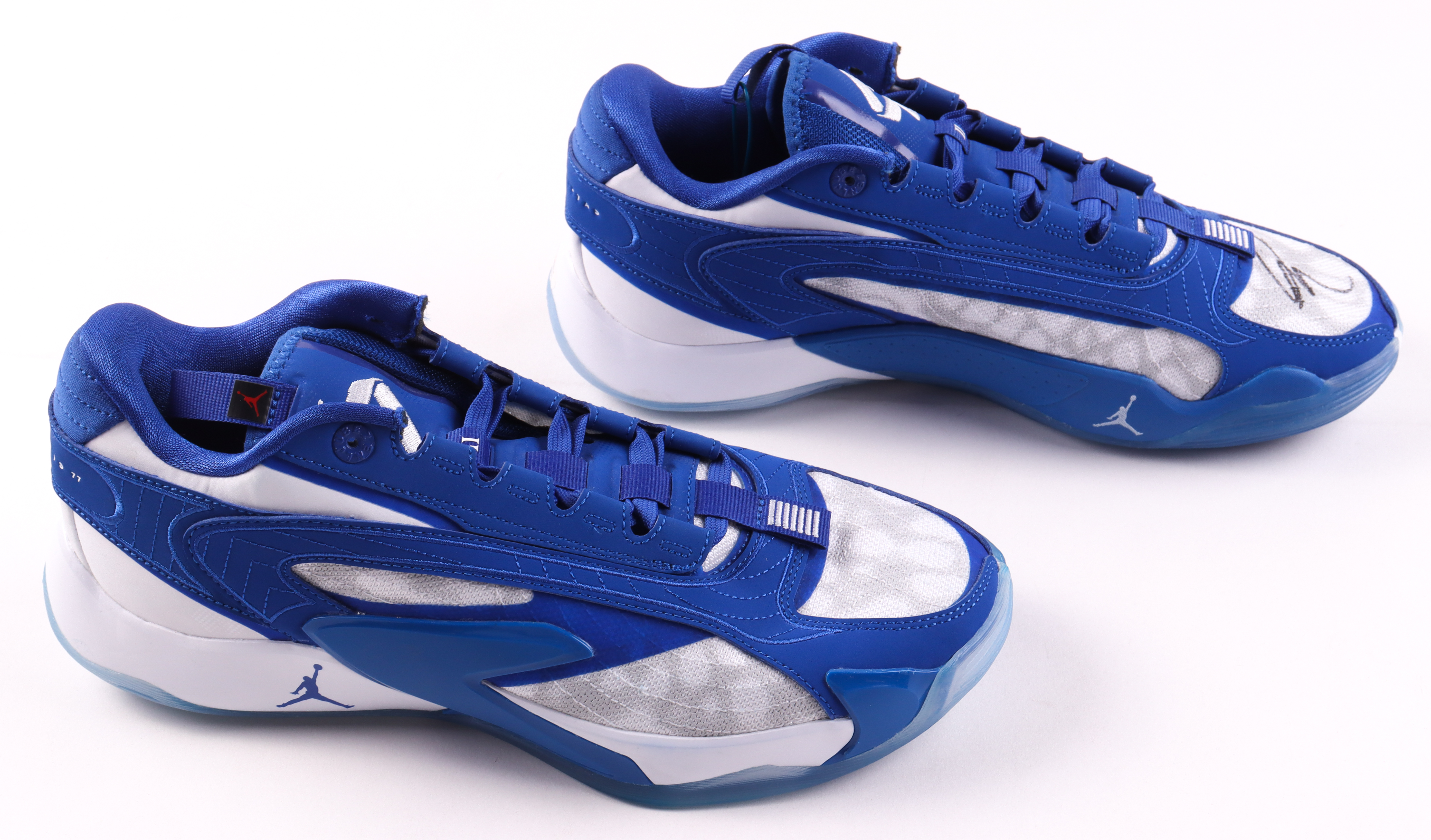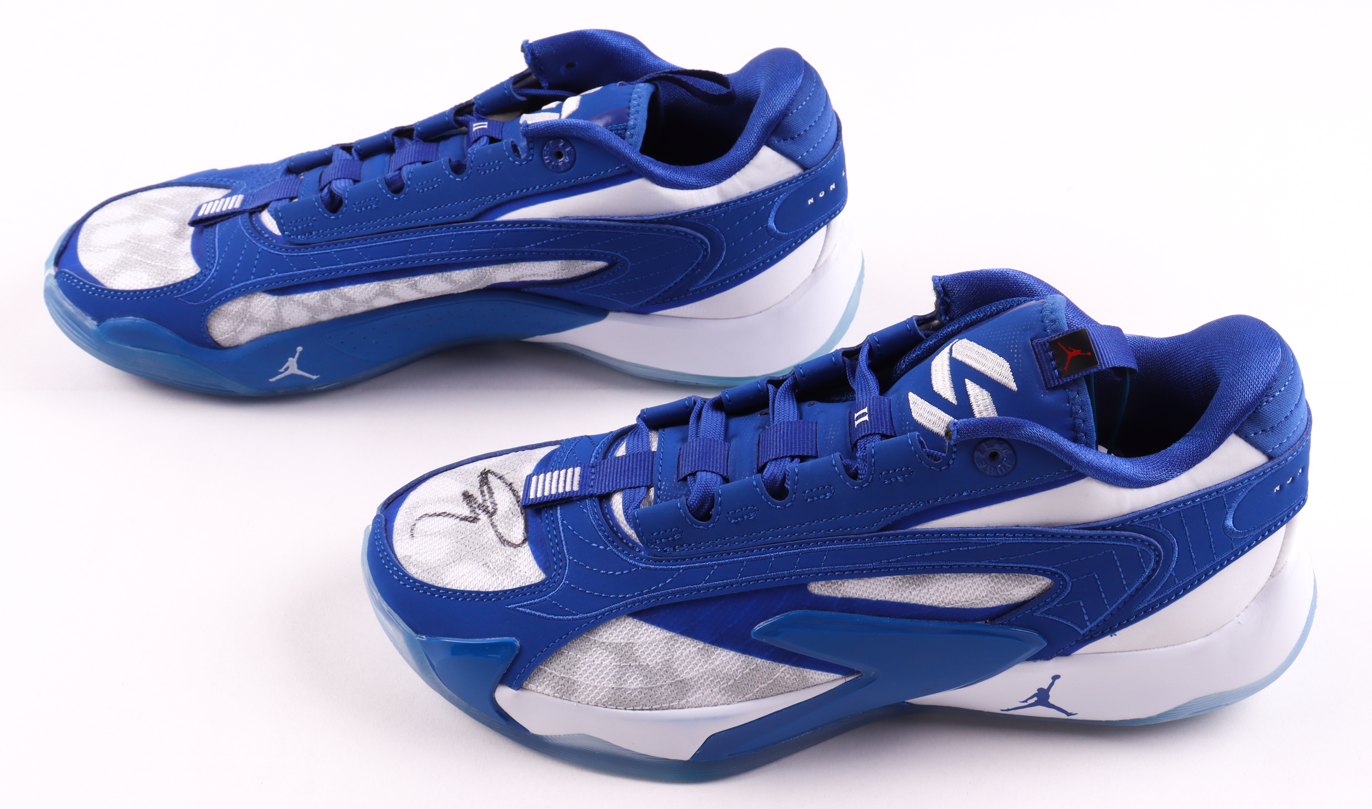 Pair of Luka 2 Jordan Basketball shoes, size 9.5. The left shoe has been hand-signed by Dallas Mavericks superstar, Luka Doncic!
